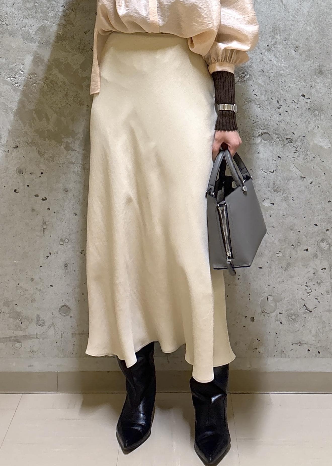 ROPÉリンクルサテンマーメイドスカートベージュ / 38¥25,300レビュー身長164㎝、普段38サイズを着用。