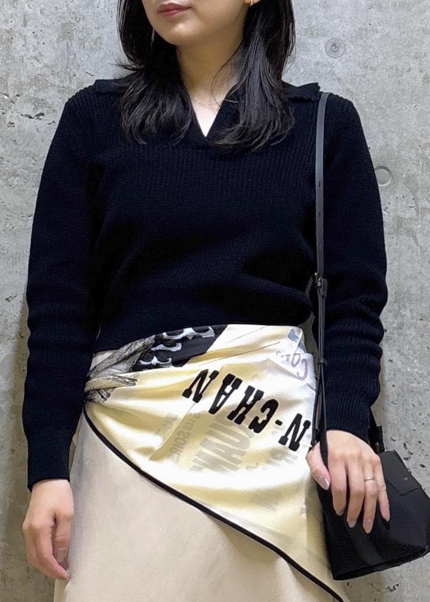 お気に入りのスカーフをプラスしベルト代わりに腰に巻くだけで