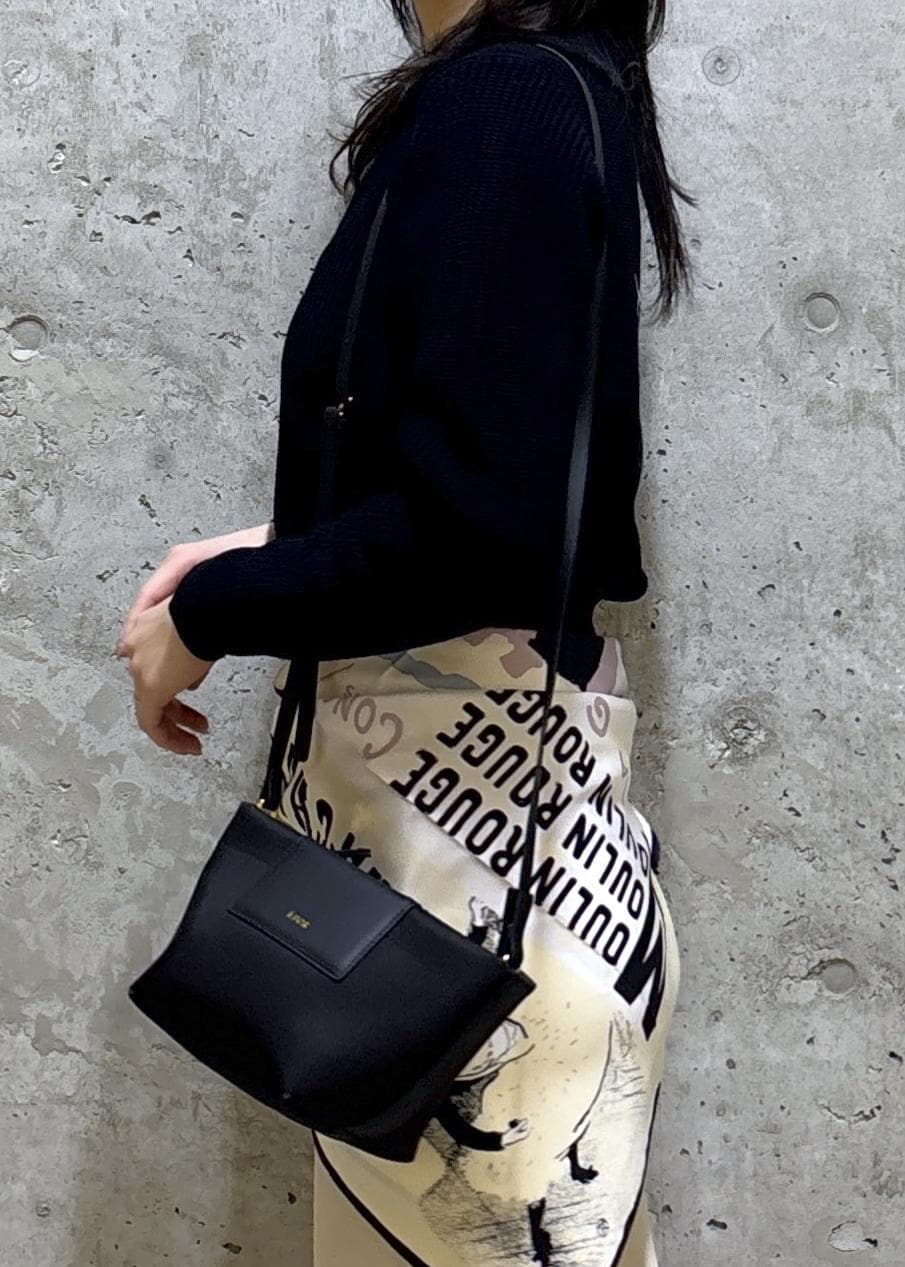 細いショルダー紐(取り外し不可、長さ調節可能)が華奢感があり、肩がけ/斜めがけができます。