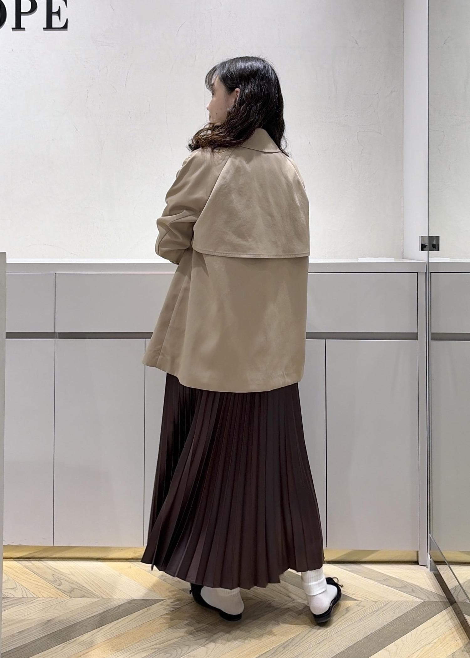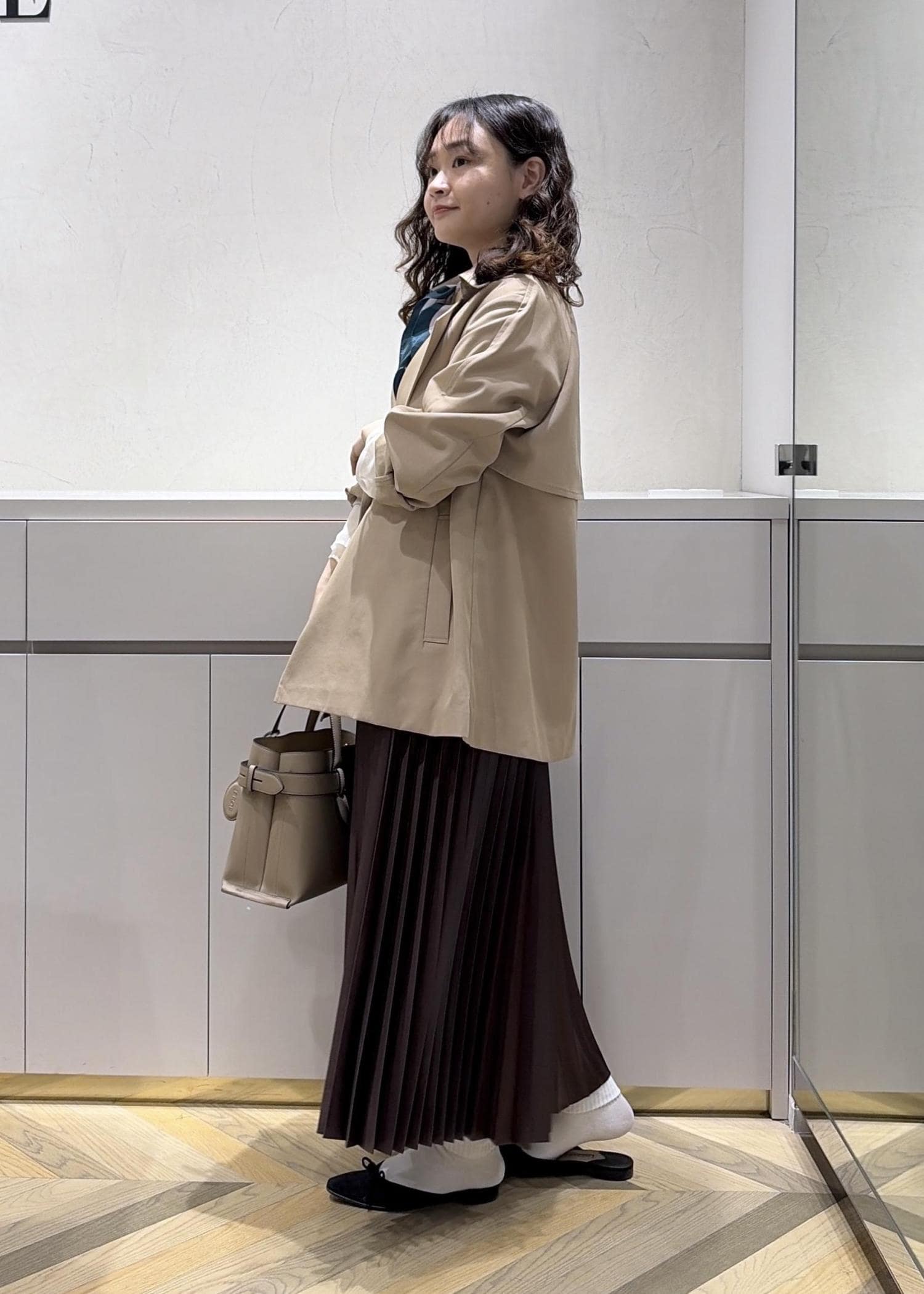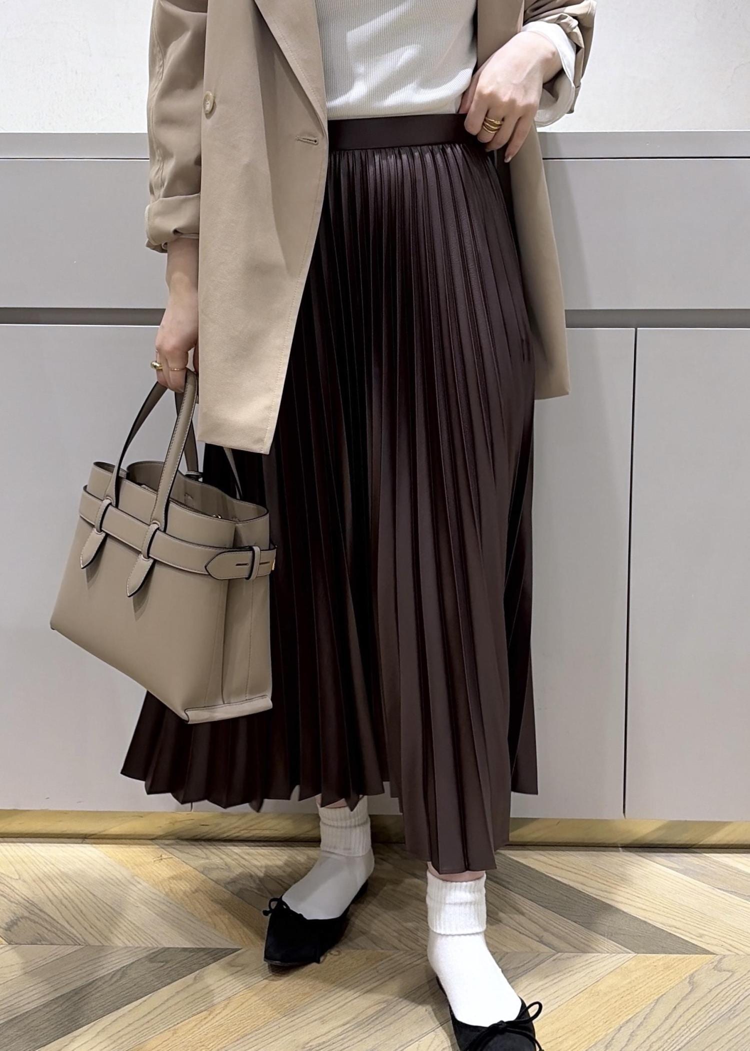 アウターとスカートが茶系なので、