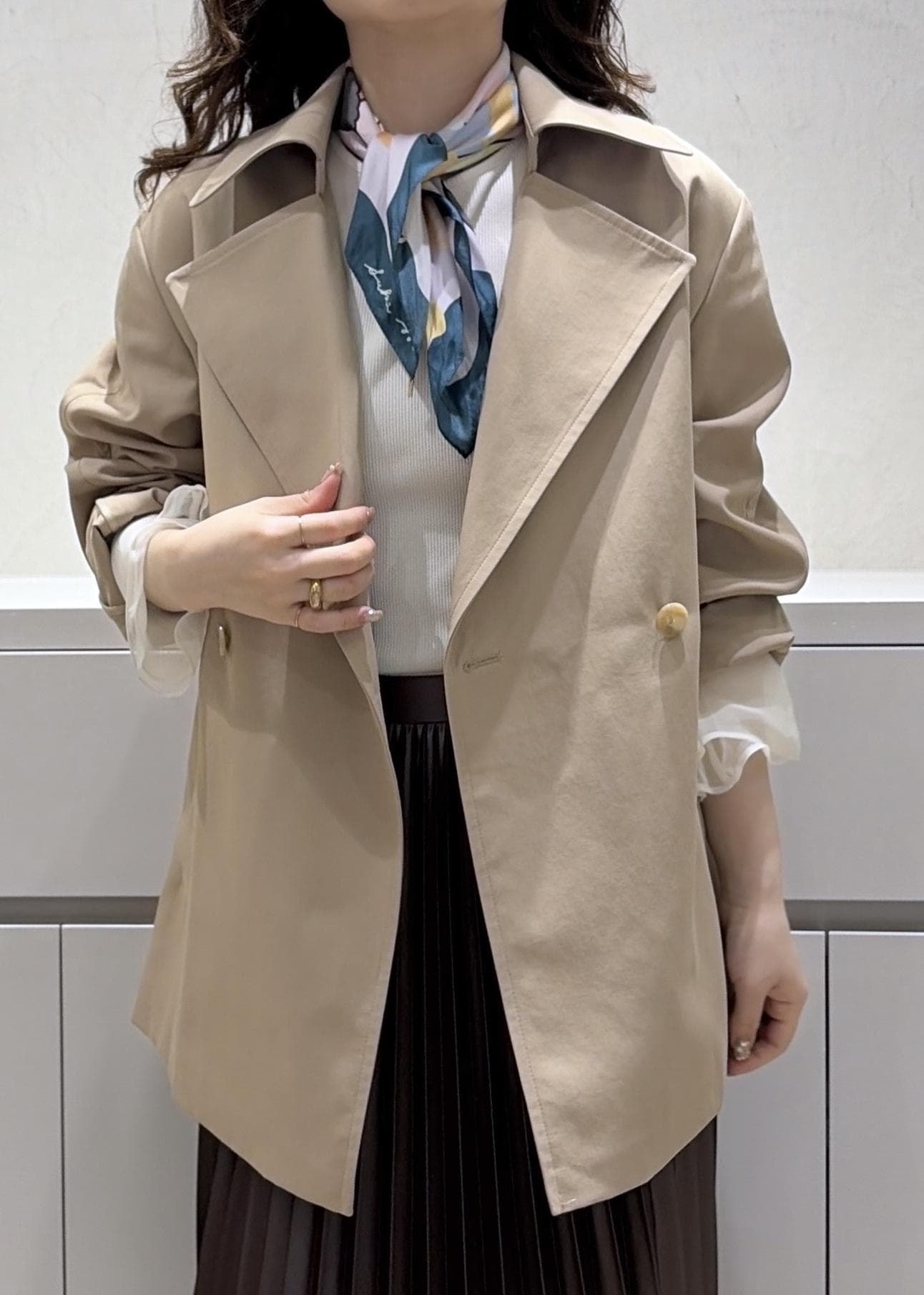 ミドル丈トレンチコートをメインに