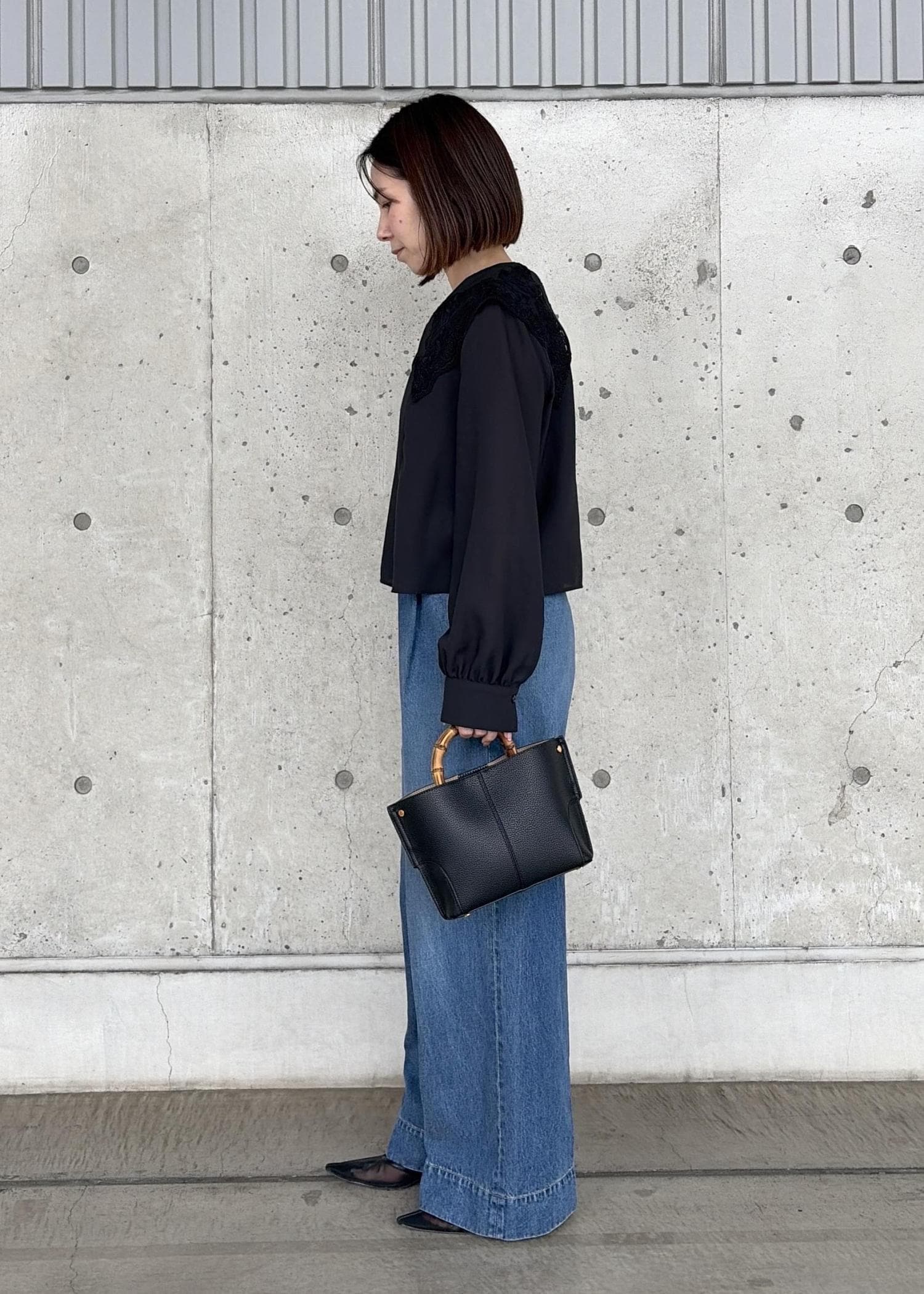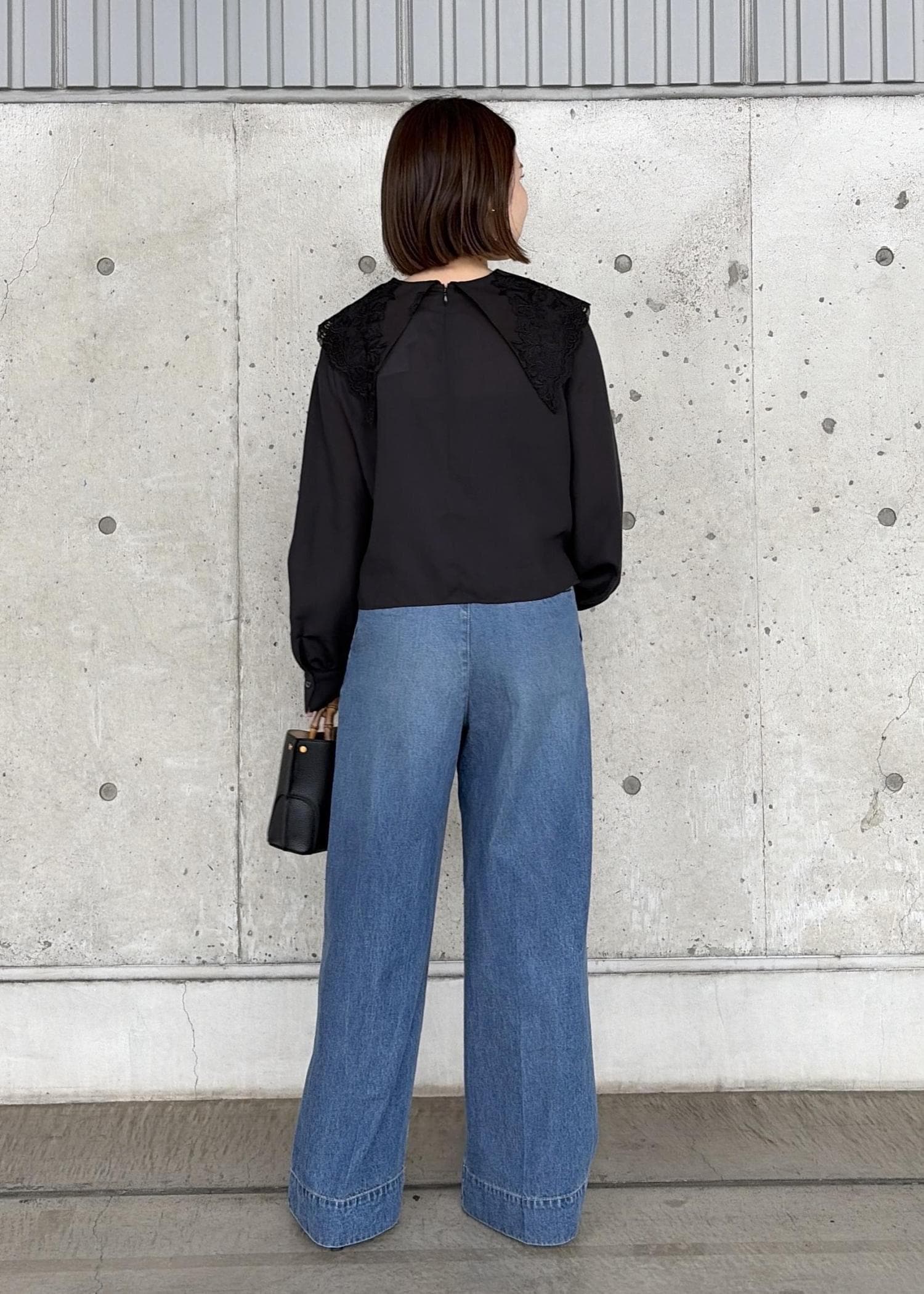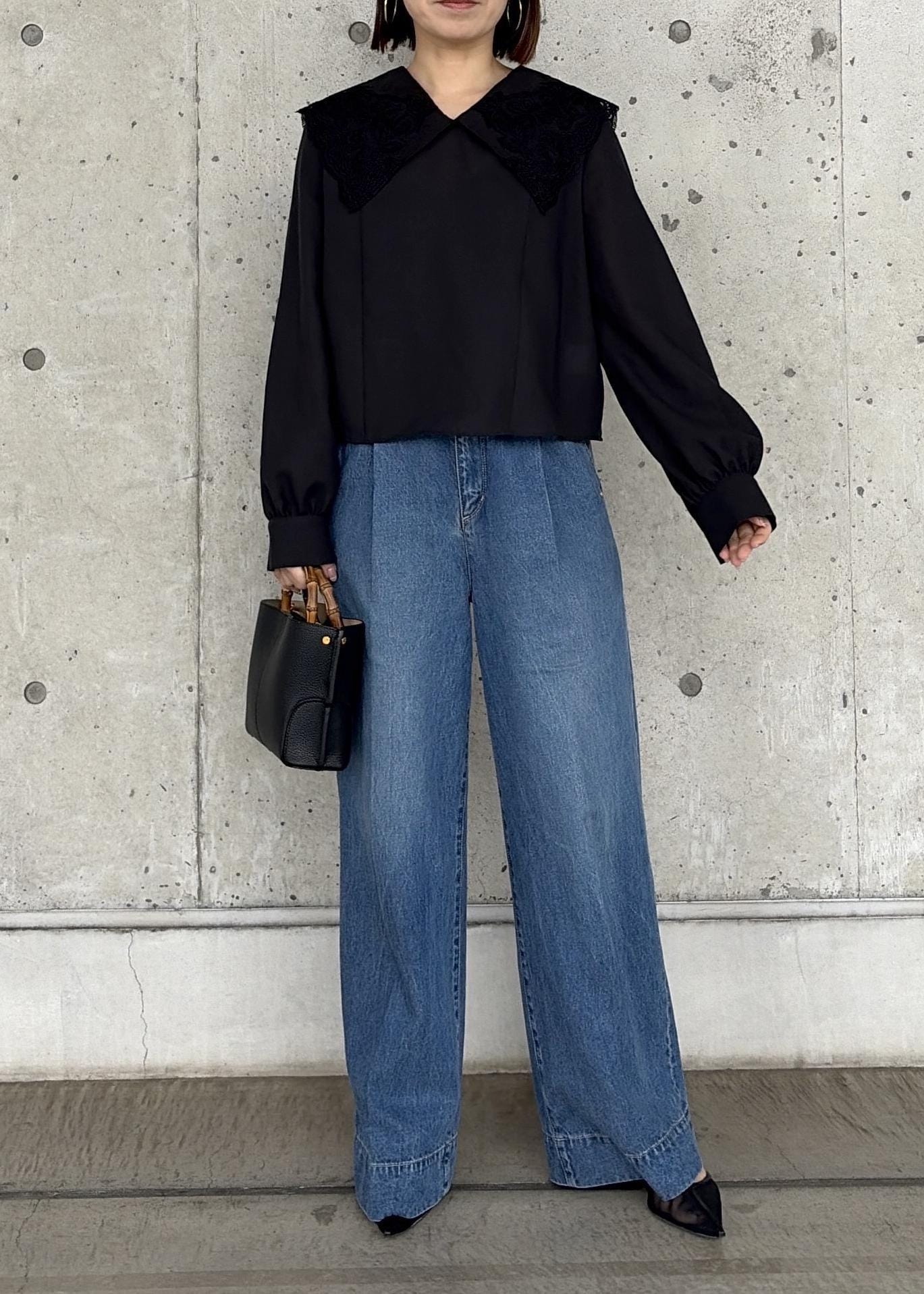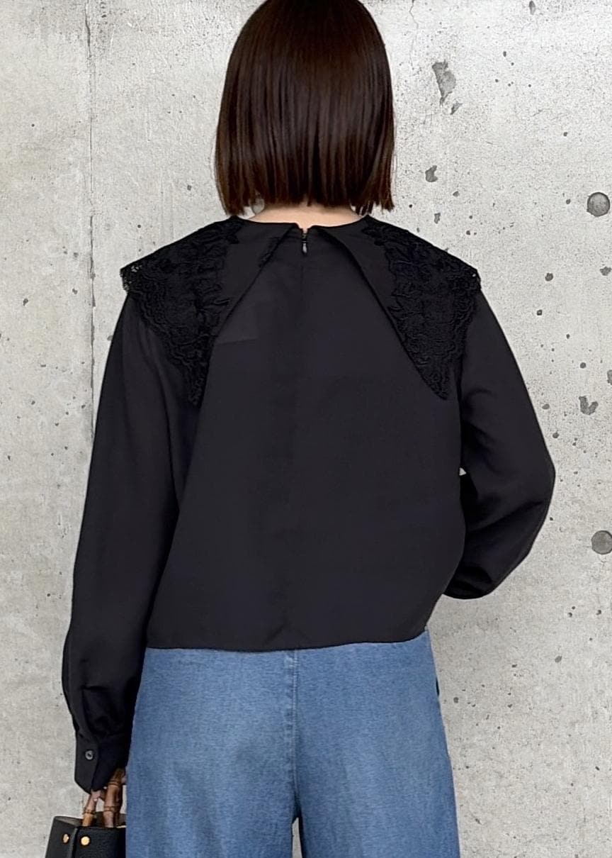 ROPÉレースカラープルオーバーブラウスブラック / F¥26,400レビュー身長156cm、Fサイズ着用。