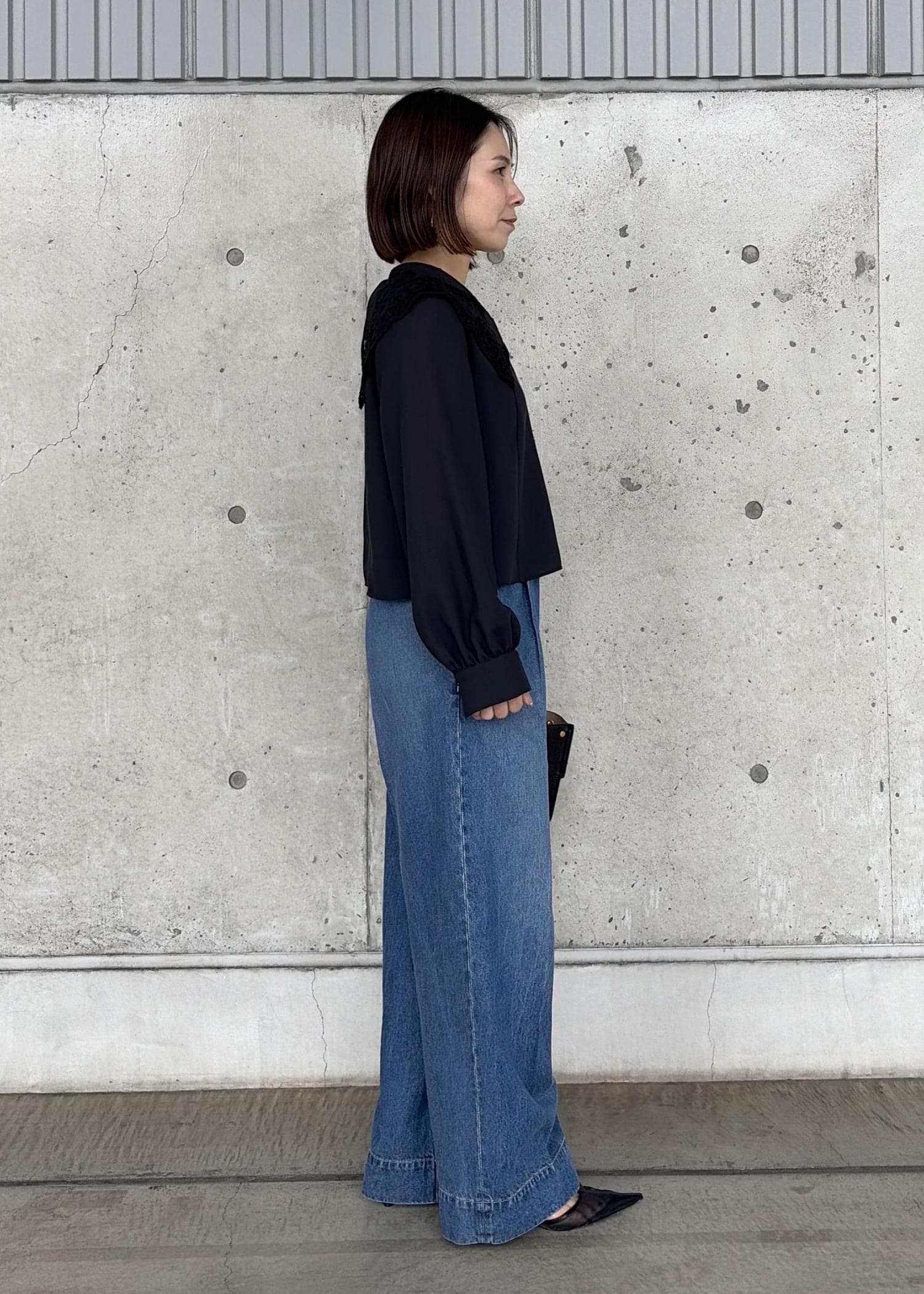 ROPÉテンセルデニムストレートワイドパンツ/イージーケア・セットアップ対応ブルー / 36¥29,700レビュー身長156cm、36サイズ着用。