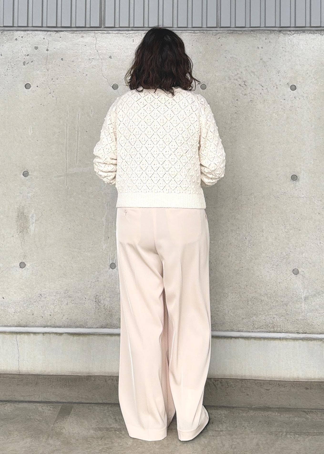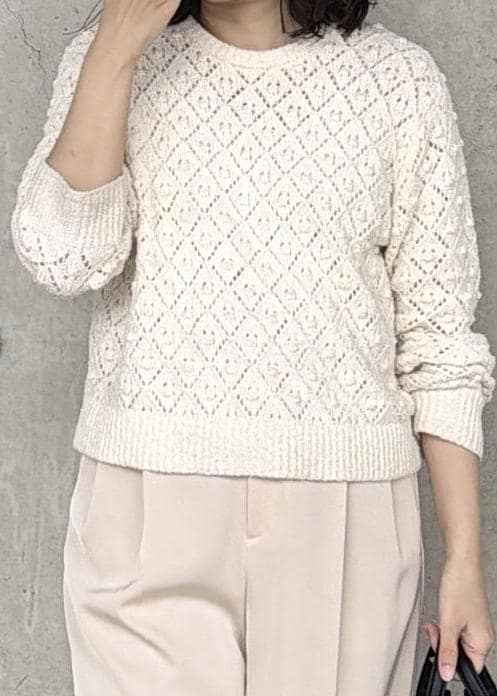 ポコポコとした立体感のあるダイヤ柄の透かし編みで軽やかな春ニットです。