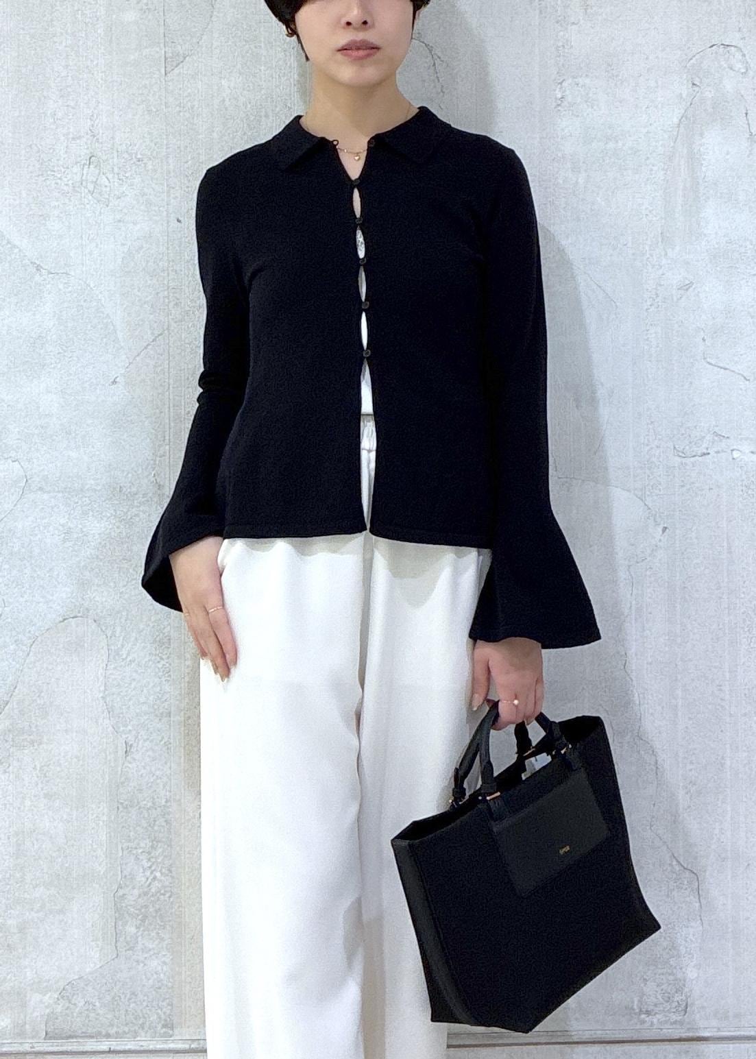 ROPÉ SELECT【一部店舗限定】【REALM(レルム)】FLARE SLEEVE KNIT|襟付きニットカーディガンブラック / 38¥31,900レビューザラっとしたドライタッチな風合いが特徴の袖フレアデザインニットです。