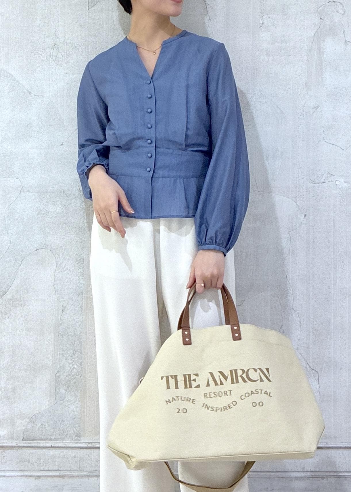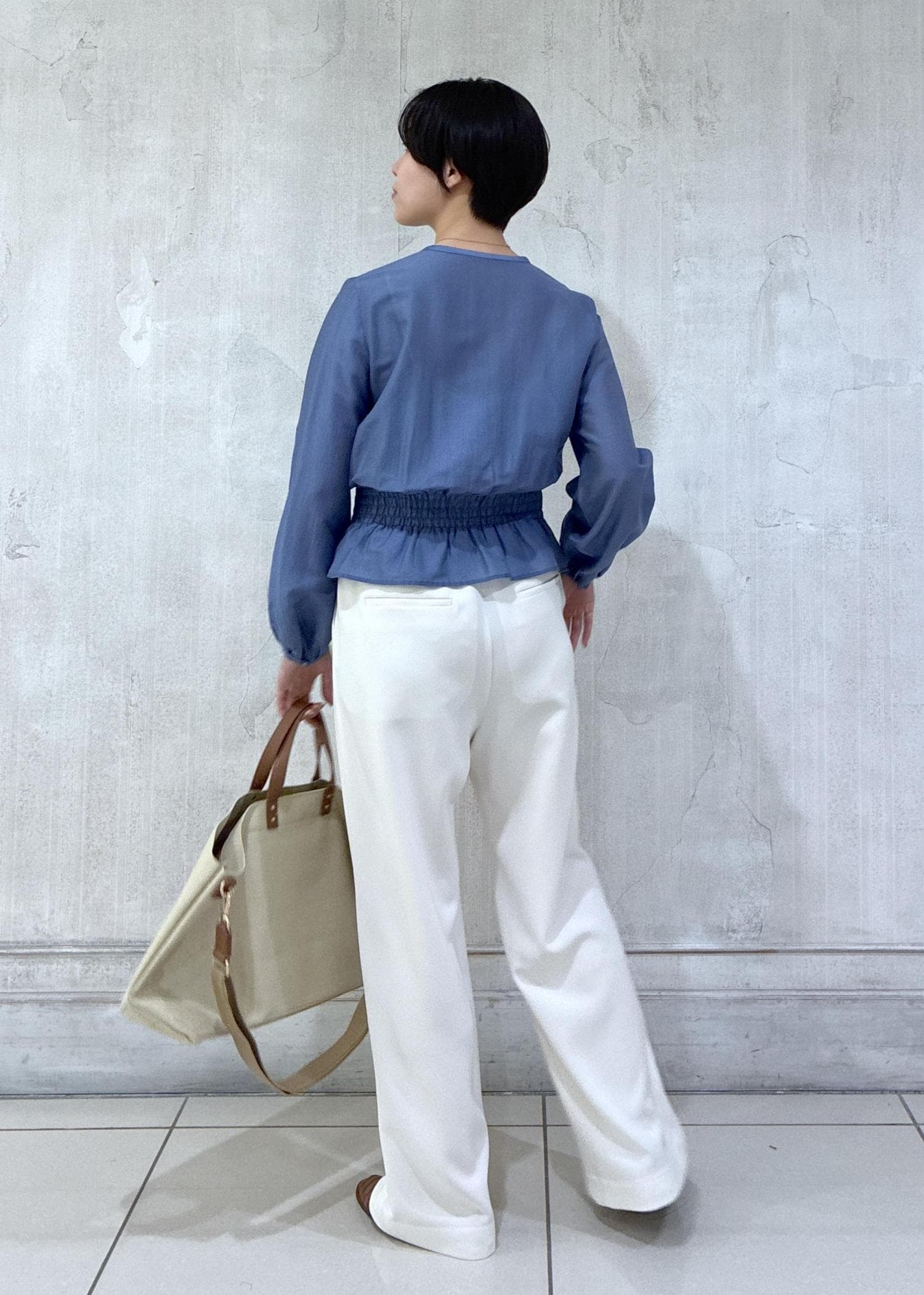ROPÉカールマイヤーウエストタックペプラムブラウス/イージーケアブルー系 / 38¥25,300レビューほんのりシアー感が春らしい軽い着心地のペプラムブラウスです。