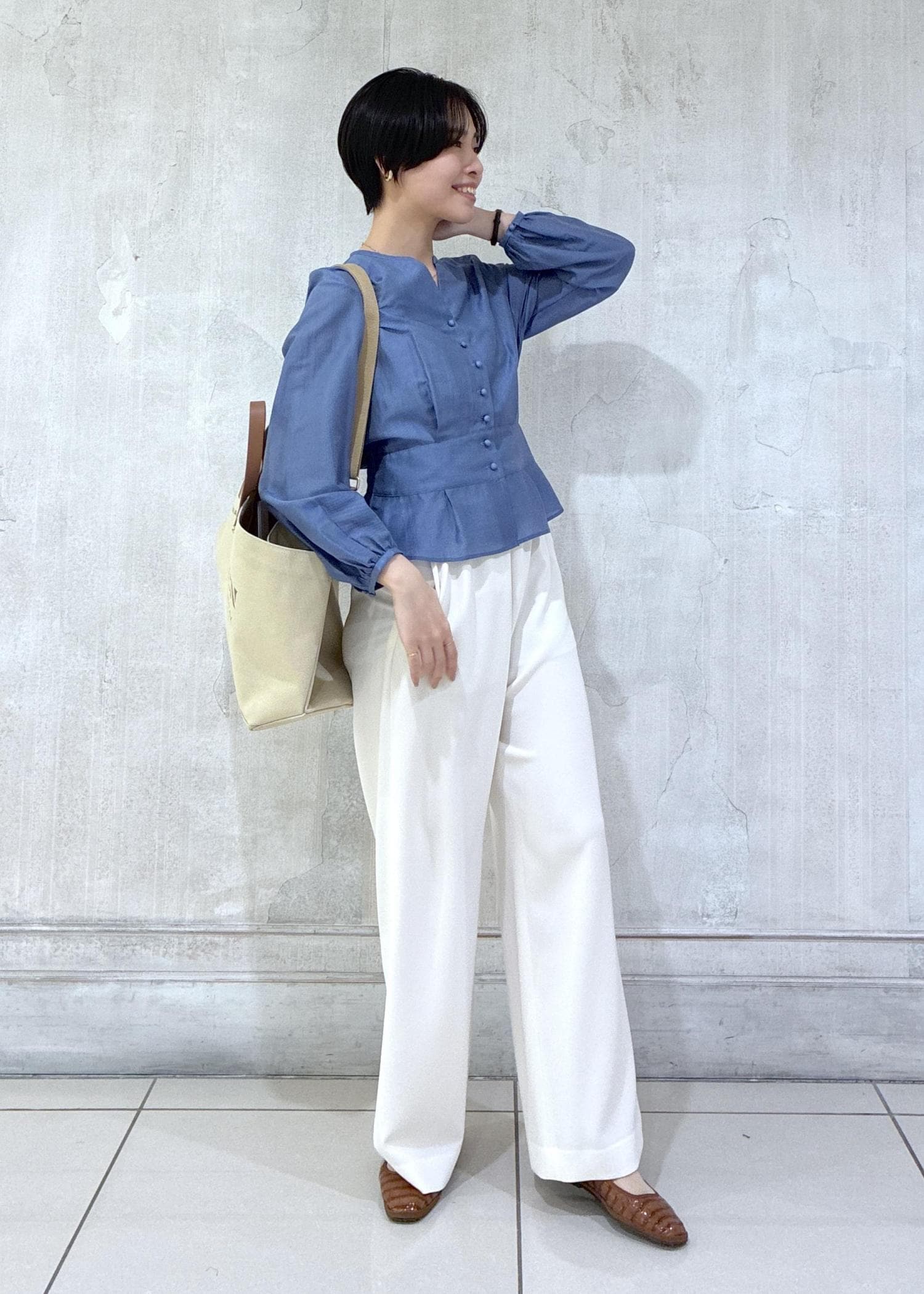 動きやすさと実用性を意識しつつ、品の良いキャメルの小物を散りばめたのがポイントです♪