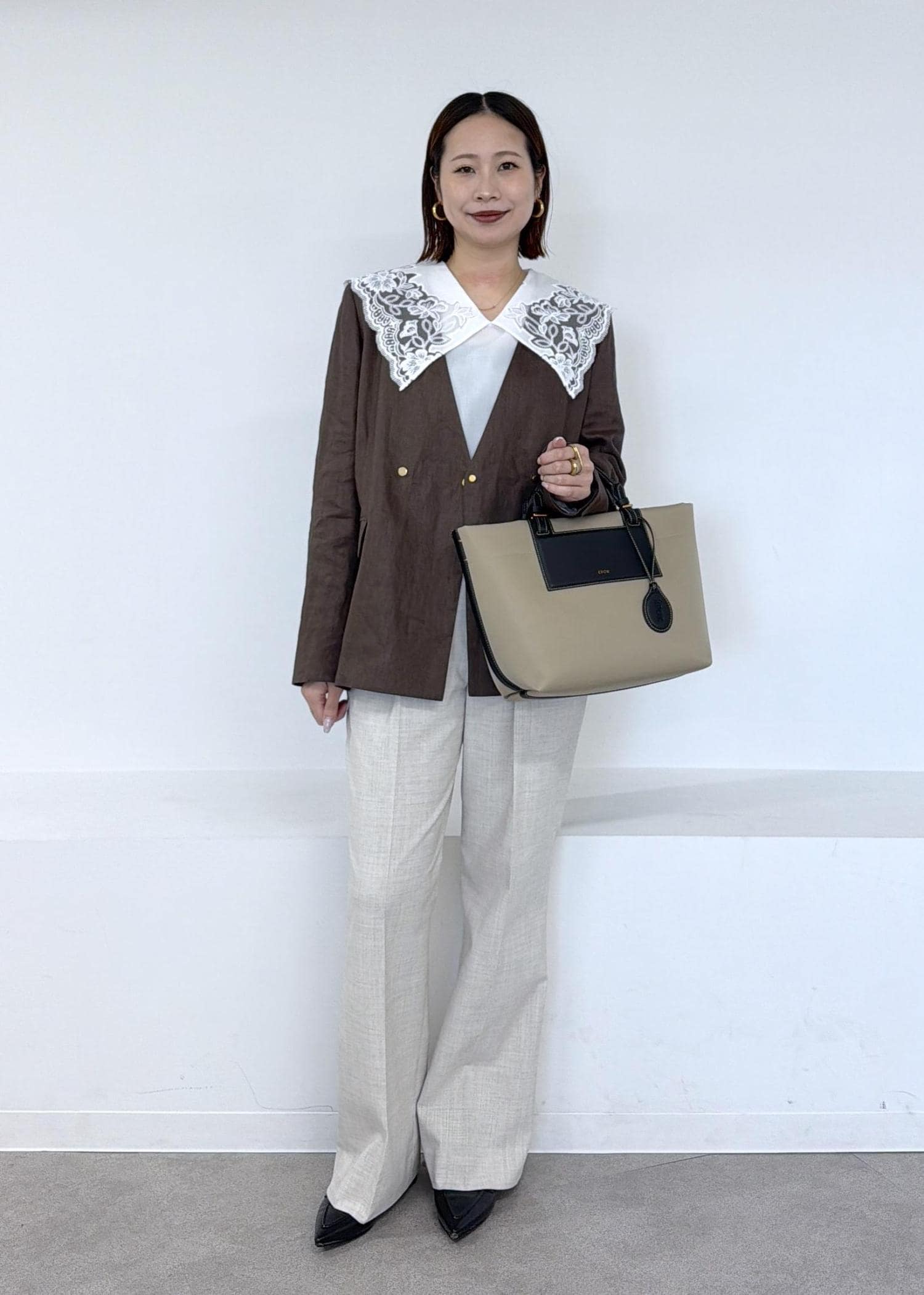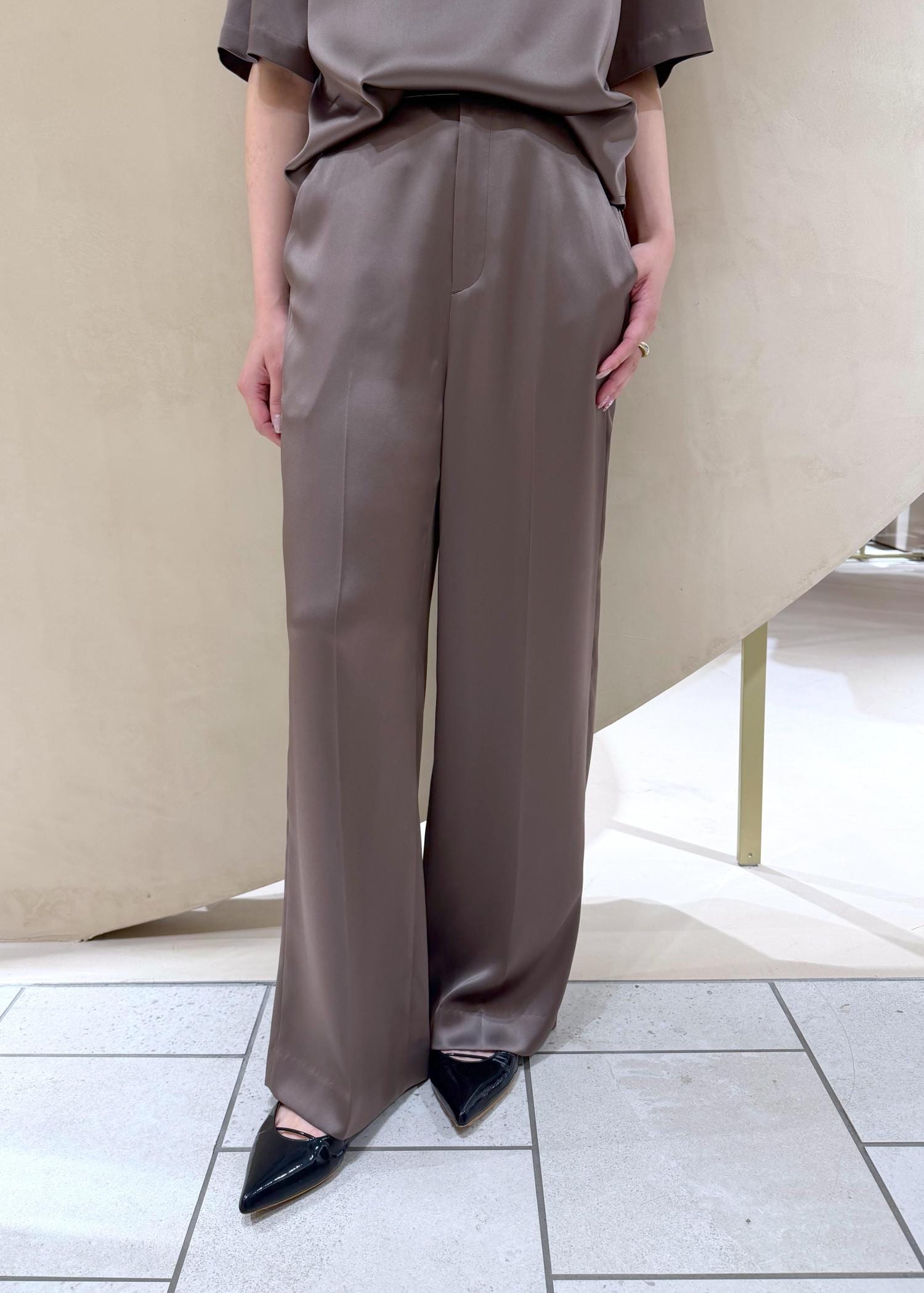 NEW! 予約ROPÉドレープサテンイージーパンツ/セットアップ対応・イージーケアキャメル系 / 38¥25,300レビュー161cmで38サイズを着用。