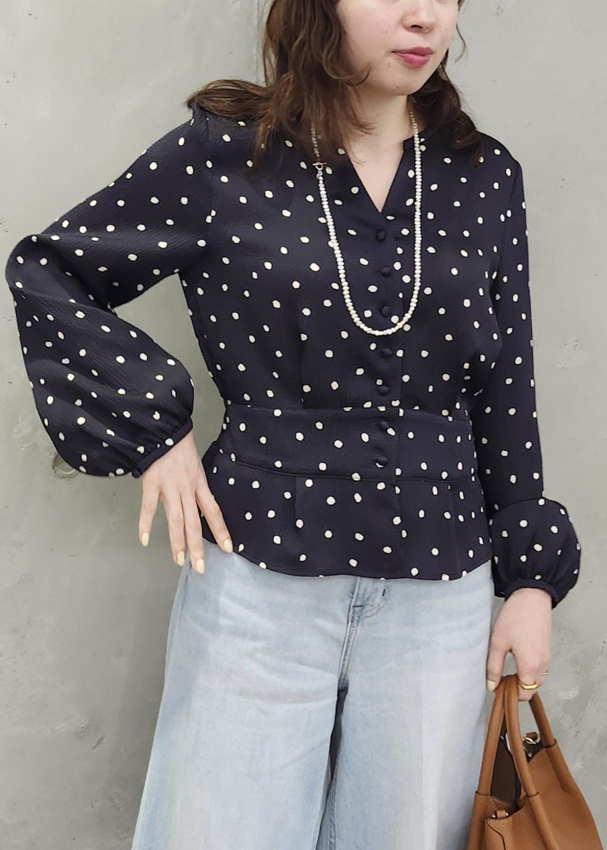 ROPÉドットプリントペプラムブラウス/イージーケアネイビー / 38¥26,400レビューサイズ38を着ております。