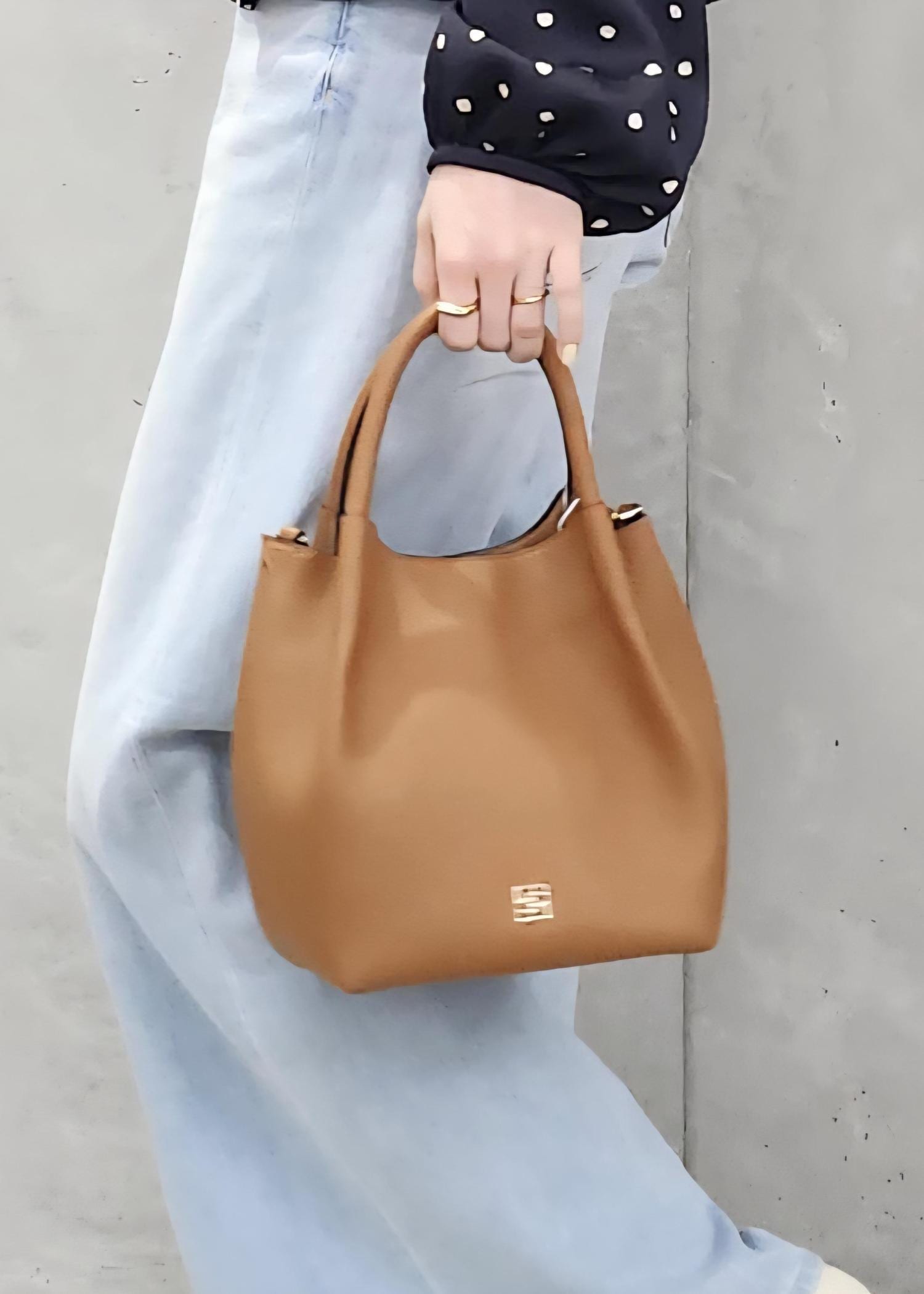 ROPÉ2WAYキューブボックスレザーハンドバッグキャメル / F¥33,000レビューコロンとしたシルエットで、マチがたっぷりとあるので休日のお出かけようでも安心して入るサイズです。お財布やポーチ、文庫本や小さめの水筒等入るサイズ感です。