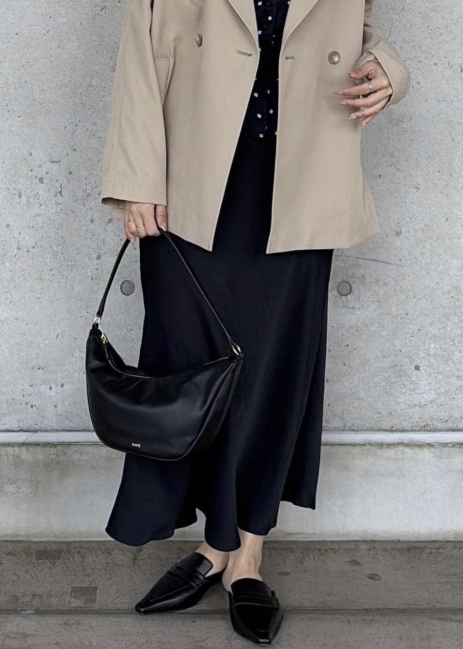 NEW!ROPÉ【撥水加工】ライトミドル丈トレンチコートベージュ / F¥39,600レビュー162センチ 普段アウター38サイズ