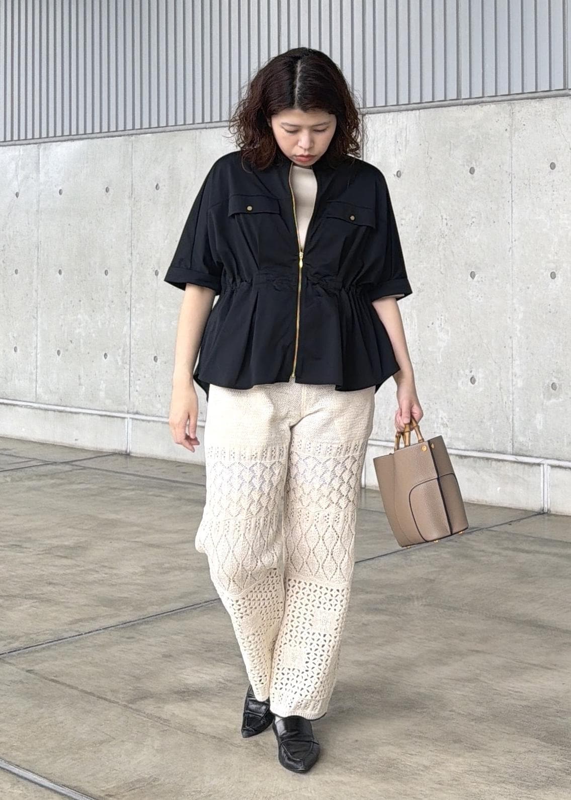 着丈は腰上あたりまでなのでボトムとのバランスはとりやすいと思います。