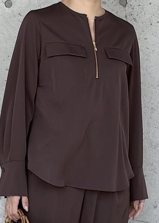 ROPÉフロントジップブラウス/イージーケア・セットアップ対応ダークブラウン / 38¥24,200レビュー162センチ 普段トップス38サイズ