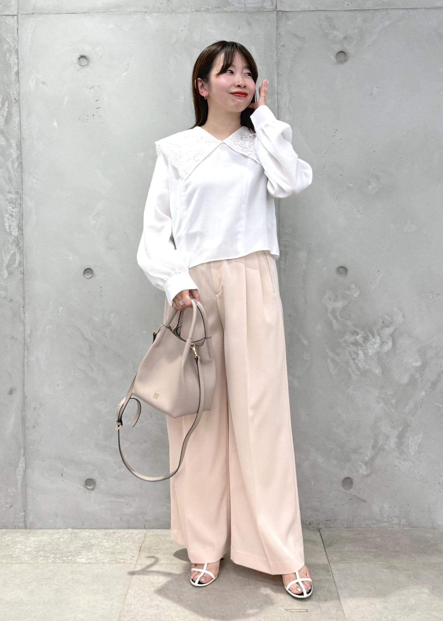 普段あまり着ないカラーですが、ニットがVネックになっているので抜け感が出てチャレンジしやすかったです◯