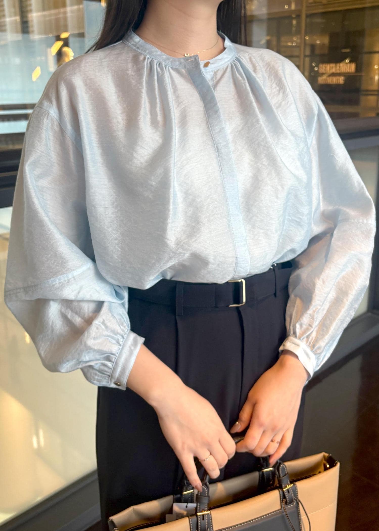 キュプラシルクボリュームスリーブブラウス/イージーケア