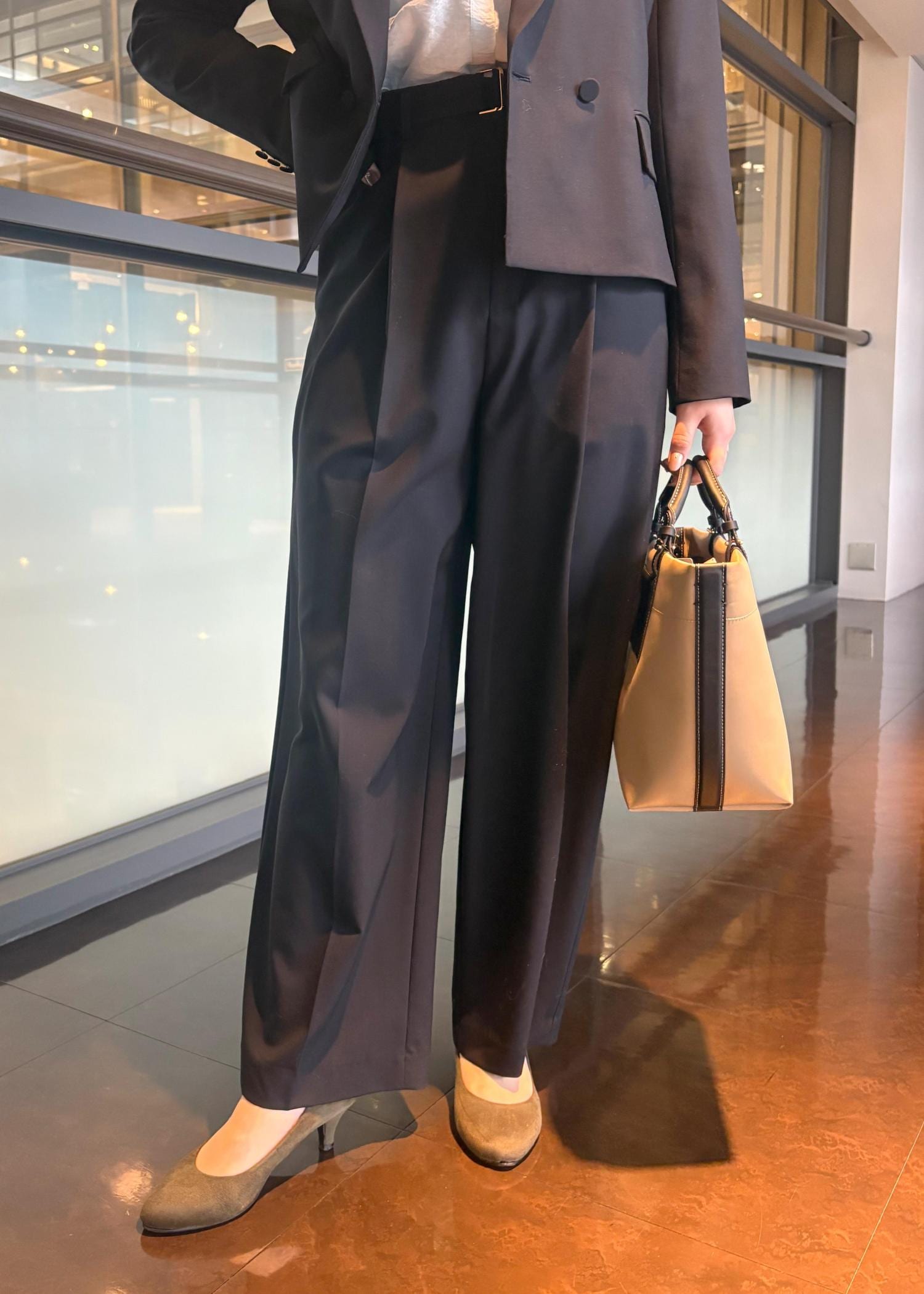 タック入りのきれいめストレートパンツ。