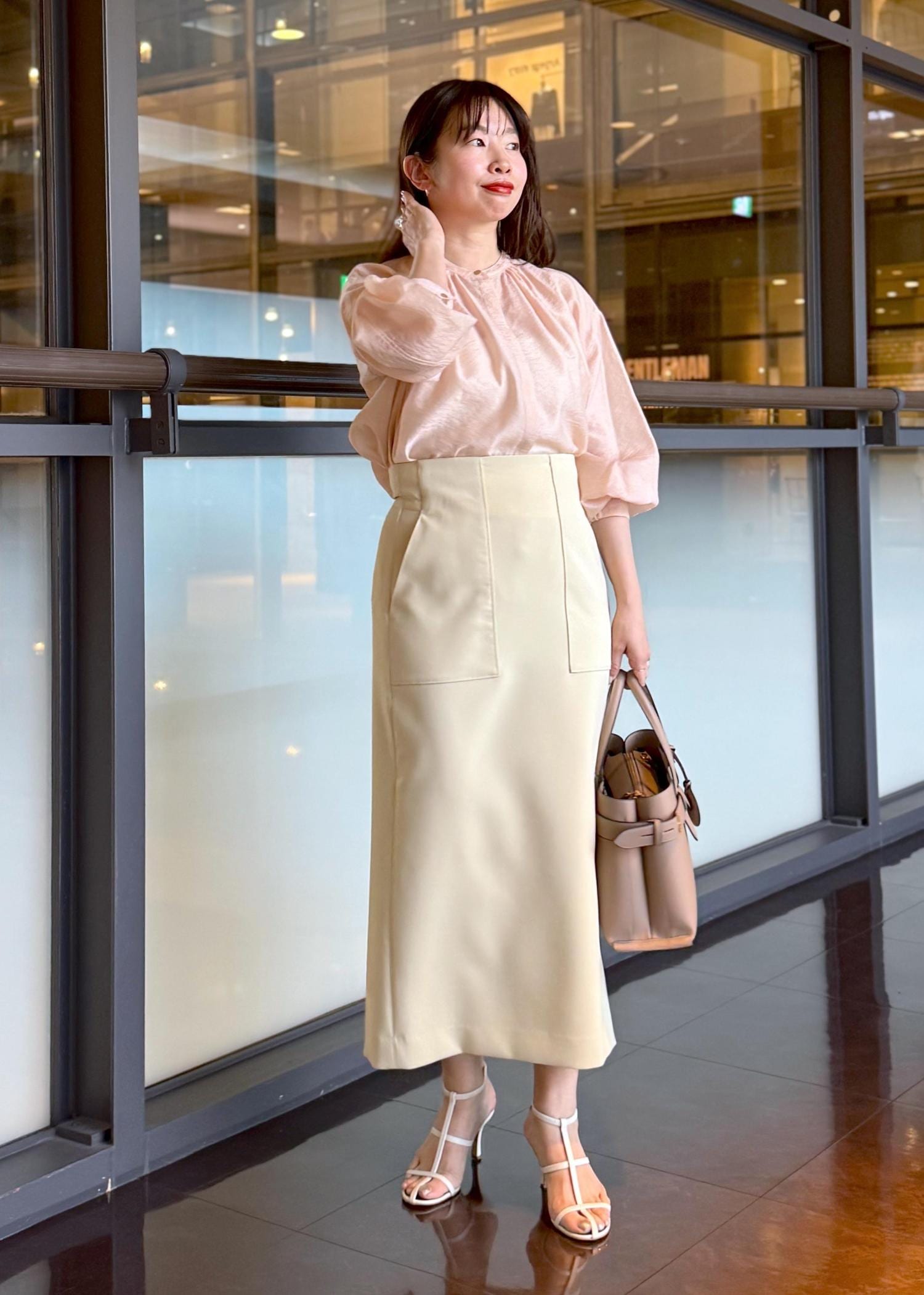 美人スカートを合わせて王道綺麗めコーデにしました。