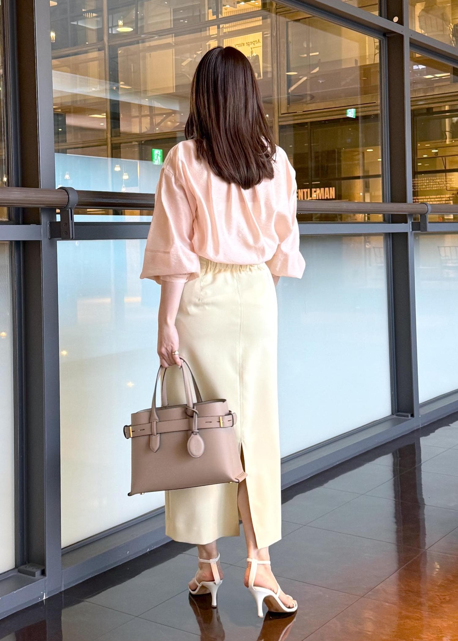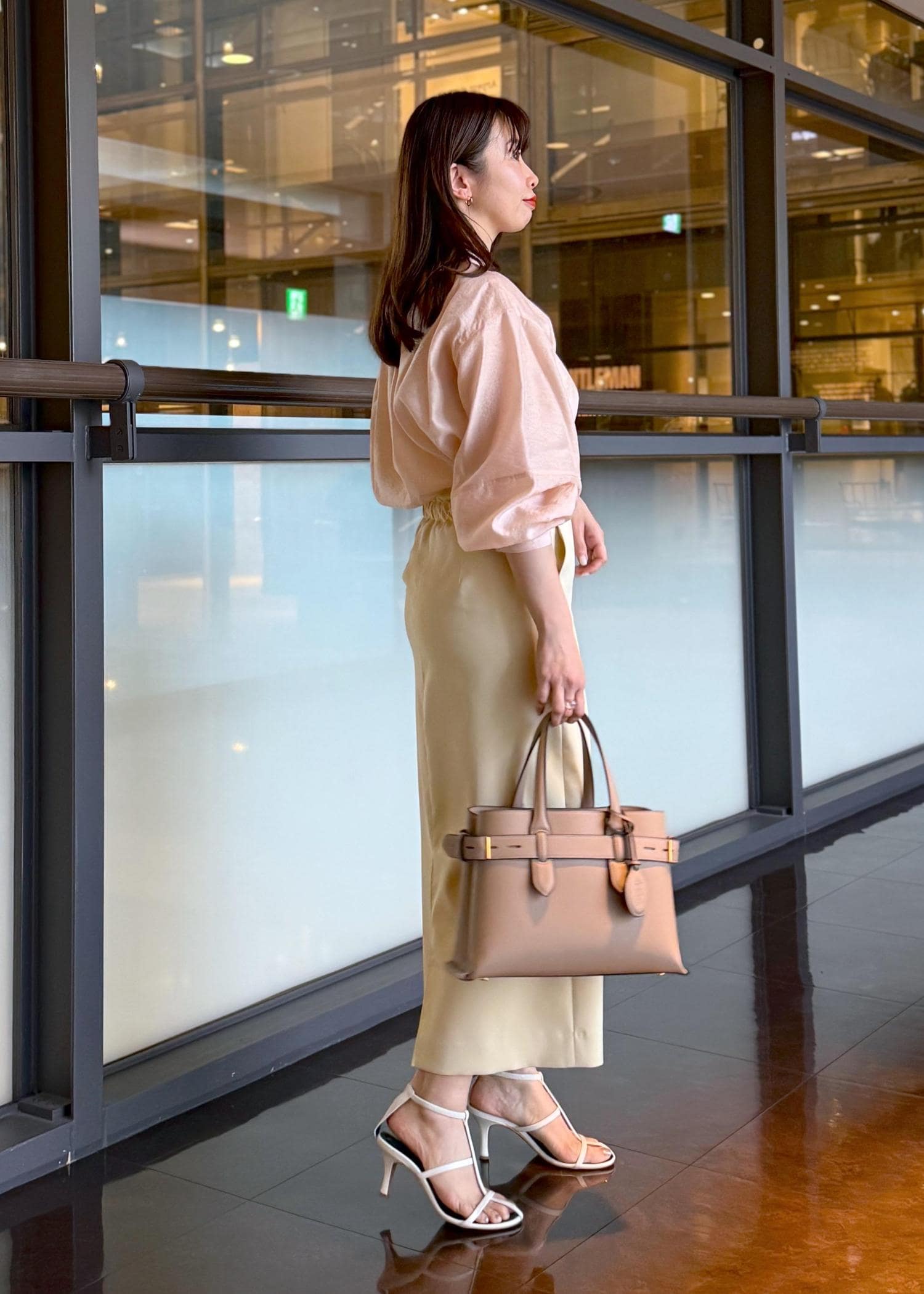 淡いピンクにイエローベージュの春らしい明るいトーンで合わせたのがポイントです♡