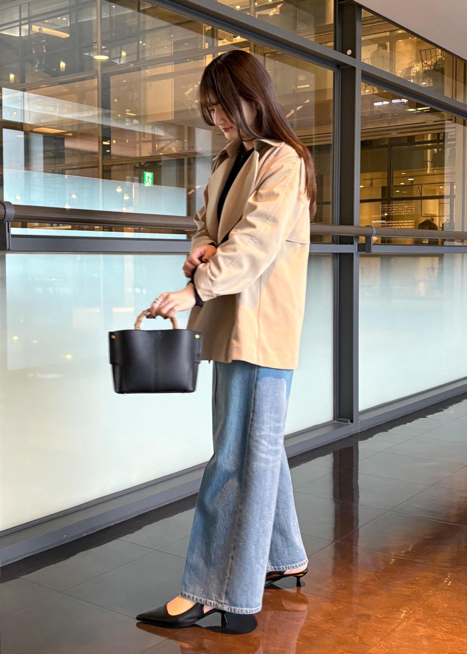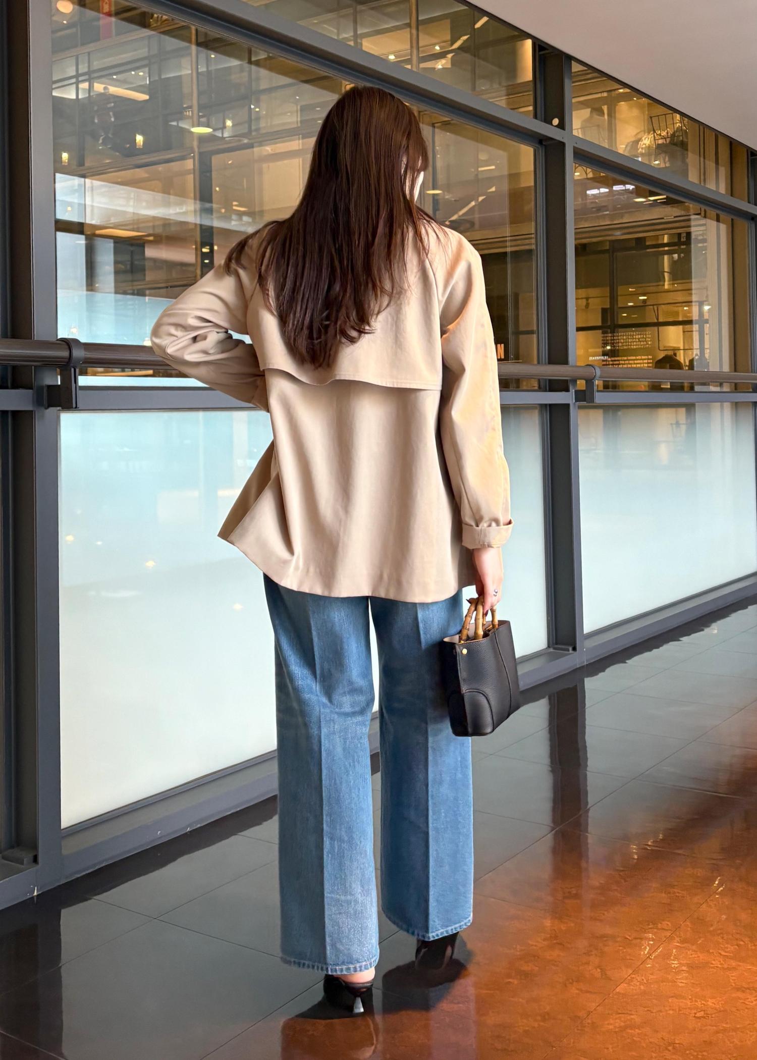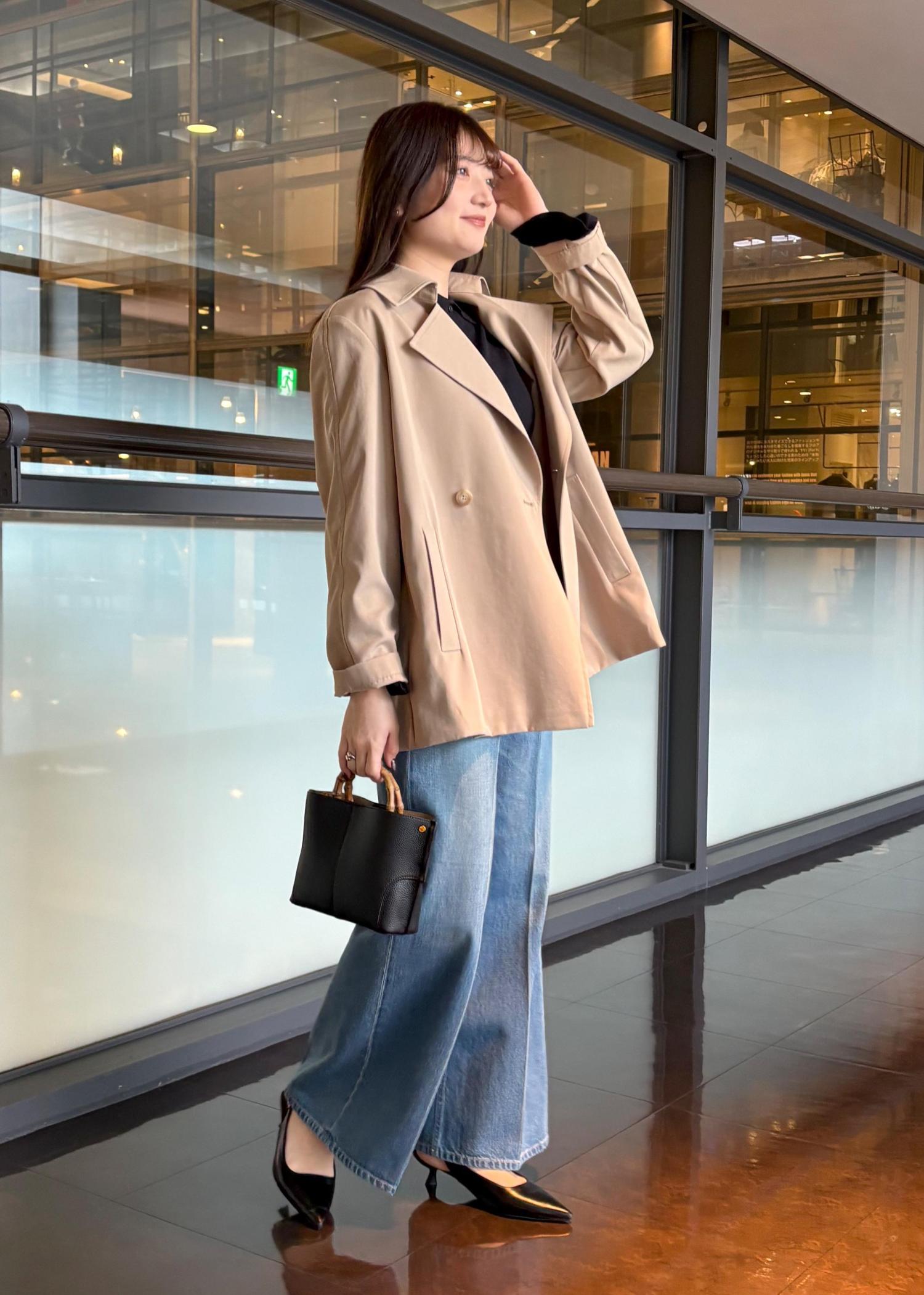 お出かけをコーデをイメージしたのでストレッチ性のあるデニムにし、ミディアム丈で軽くて動きやすく、天候が変わりやすい春の時期でも左右されず羽織れるコートを合わせました!