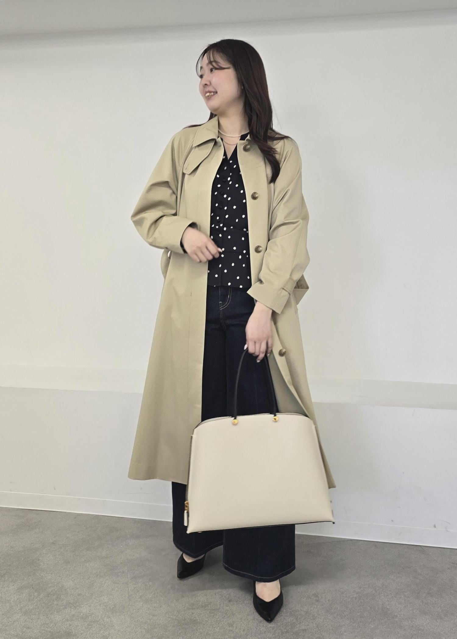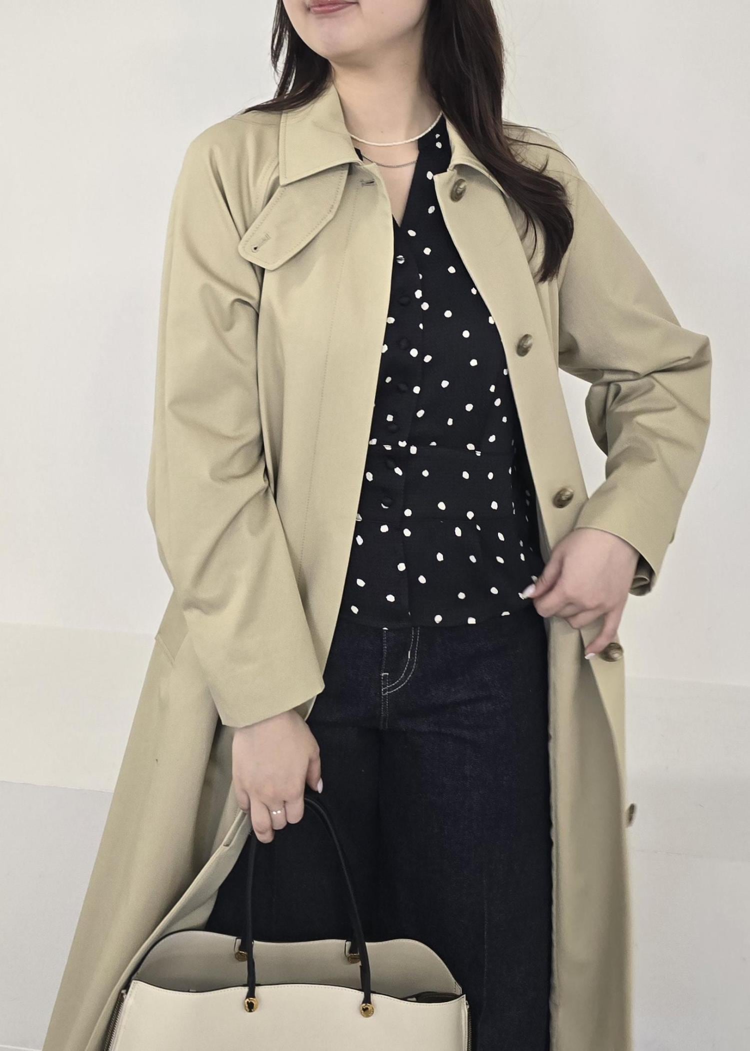 ROPÉツイルクロス ステンカラースプリングコートベージュ系 / 38¥53,900レビューラグランスリーブで重ね着しても肩まわりがもこもこせず着用できます。