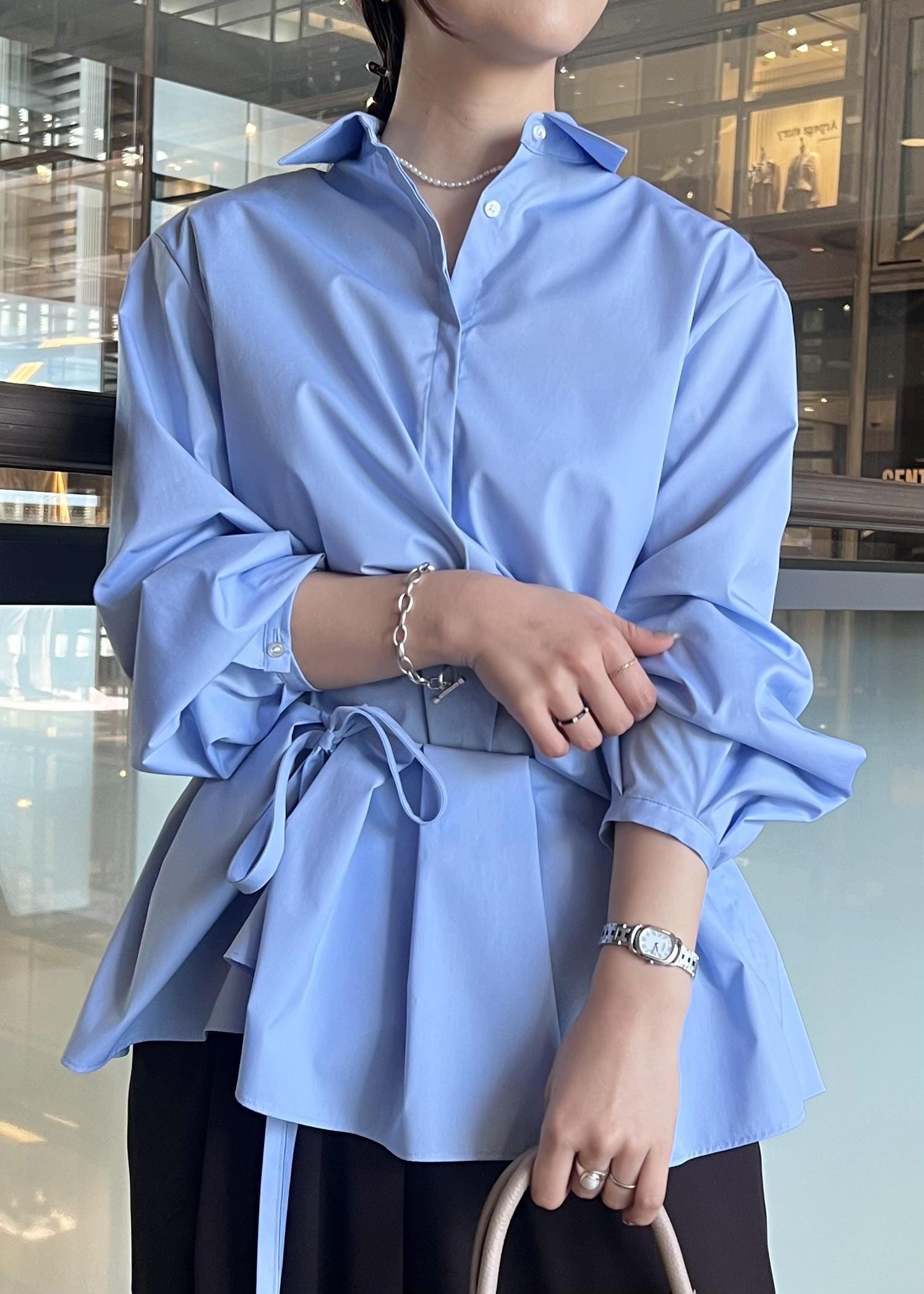 ROPÉ SELECT【一部店舗限定】【REALM(レルム)】PEPLUM BLOUSE|2WAYブラウス 26SSサックス / 38¥36,300レビュー着丈はお尻の半分が隠れるくらい。