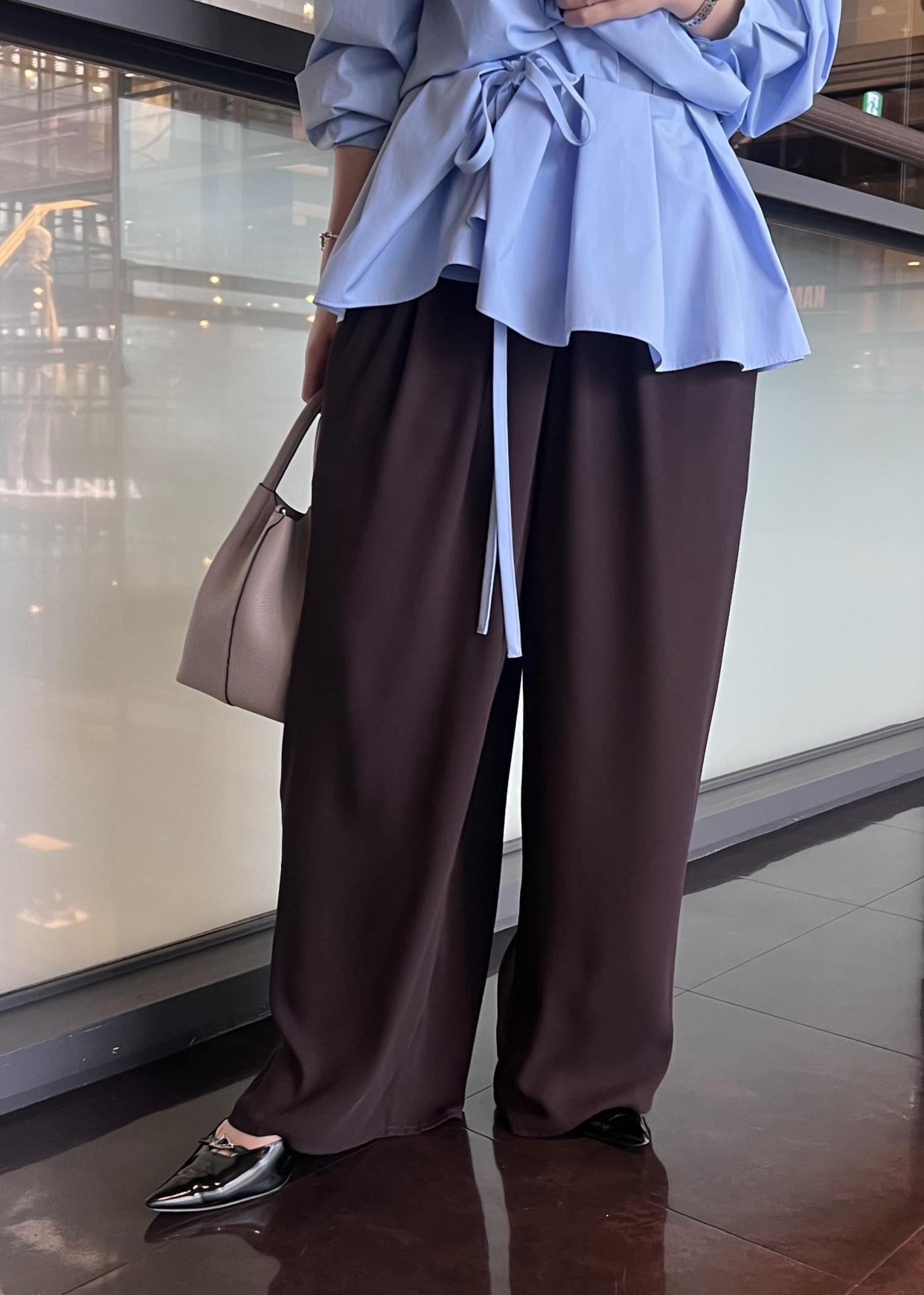 ROPÉ SELECT【一部店舗限定】【REALM(レルム)】GATHERED PANTS|ギャザーパンツ 26SSダークブラウン / 38¥36,300レビューウエストは全周ゴムで38サイズだと落ちてきてしまうのでひと折りしてちょうどよかったです。ジャストで着るなら36サイズがおすすめ◎
