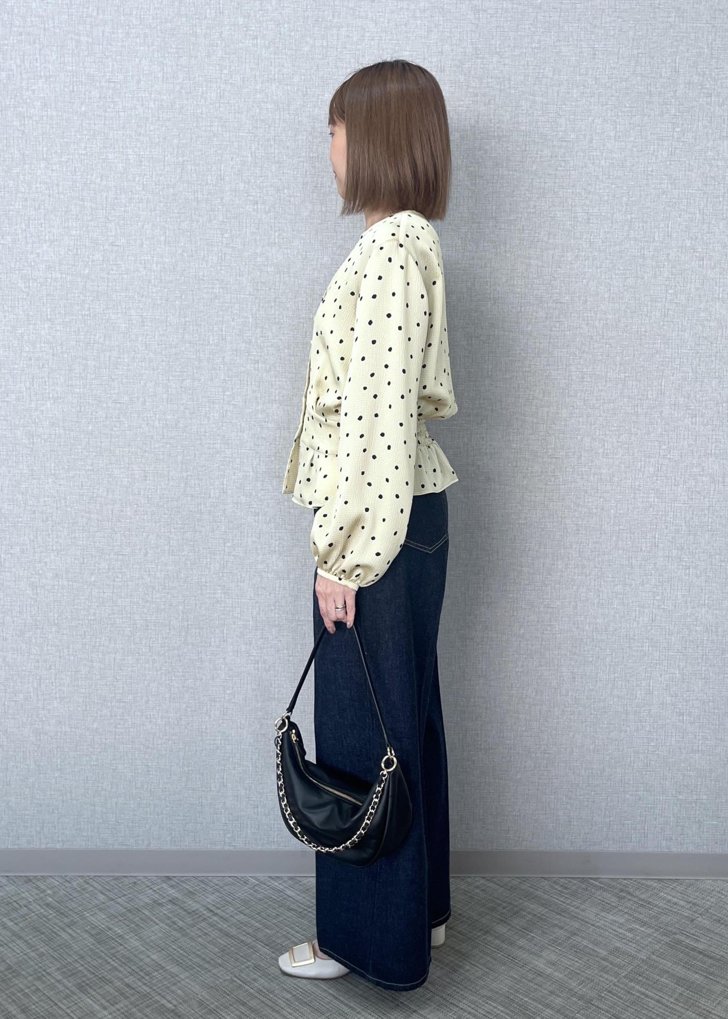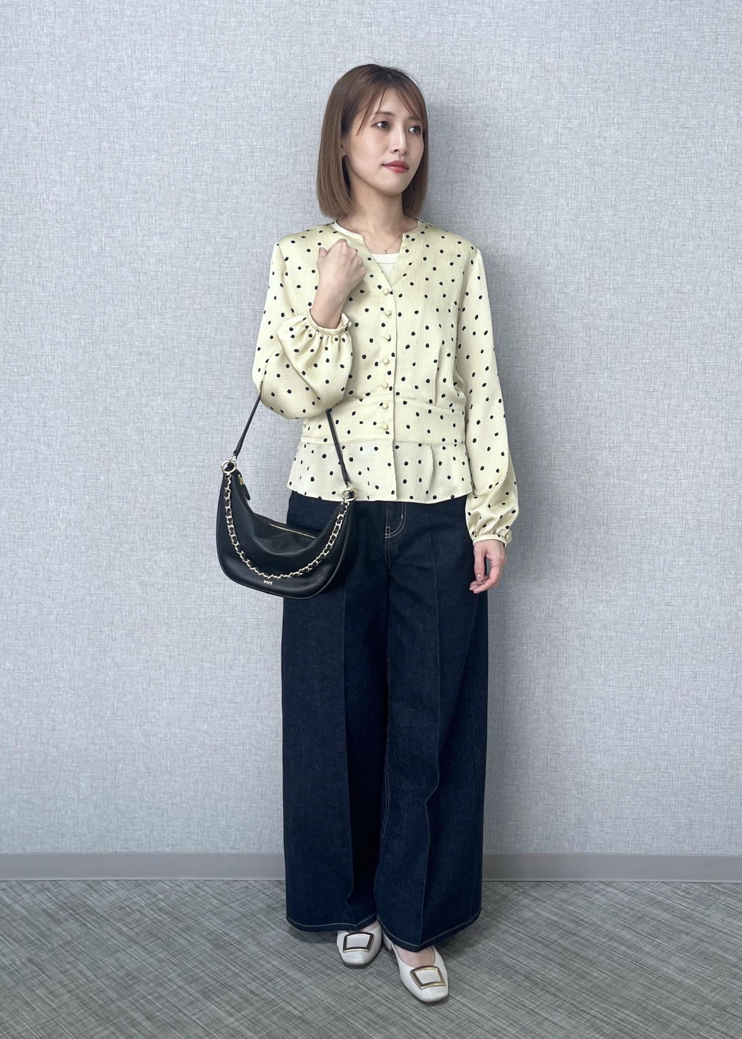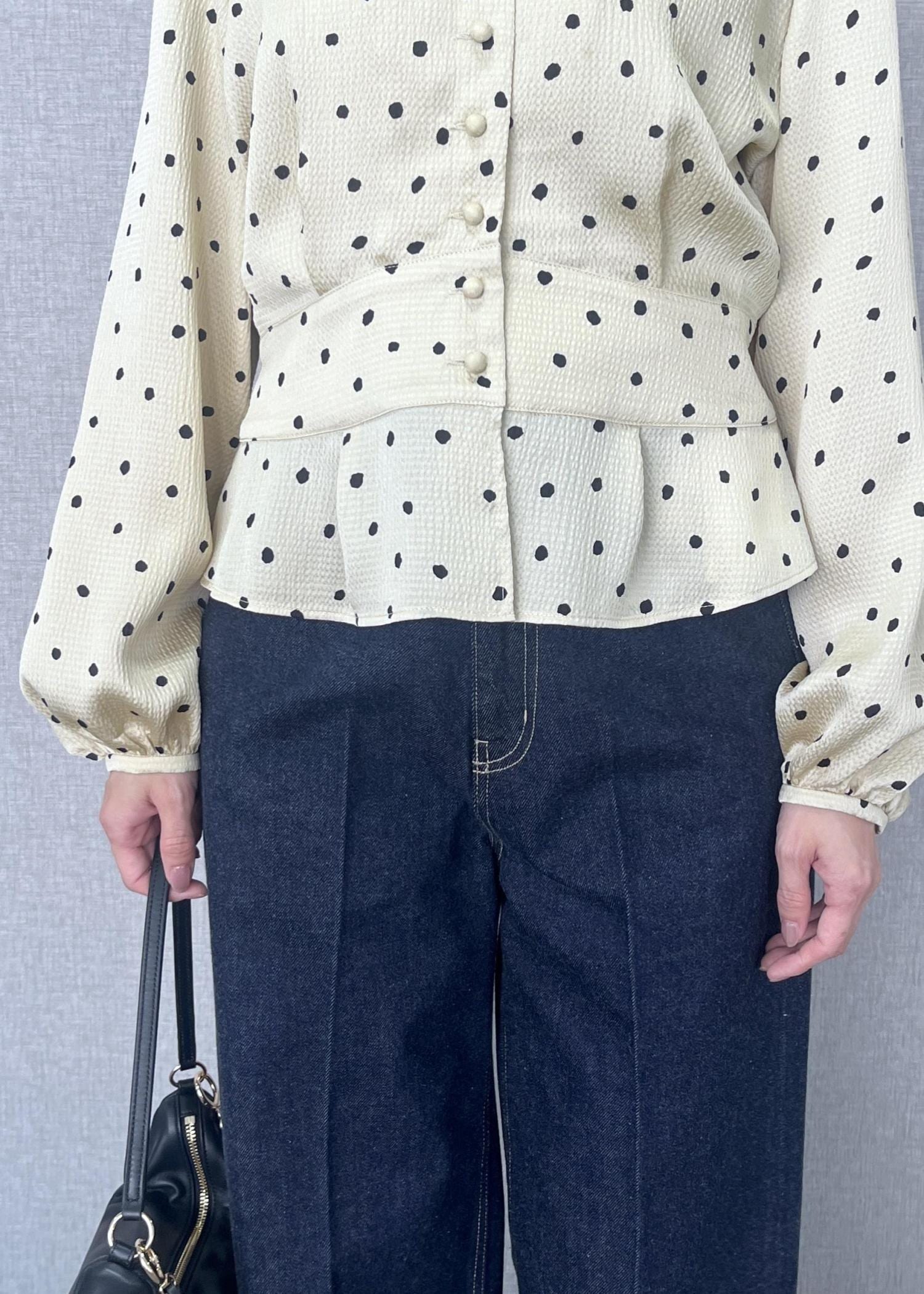 ROPÉドットプリントペプラムブラウス/イージーケアベージュ / 38¥26,400レビュー肌にさらっと触れる柔らかい手触りと軽さのあるトップスです。38サイズを着用しておりますが、ボトムにスカートやタイトなものを持ってくる際は36サイズがジャストだと思います。