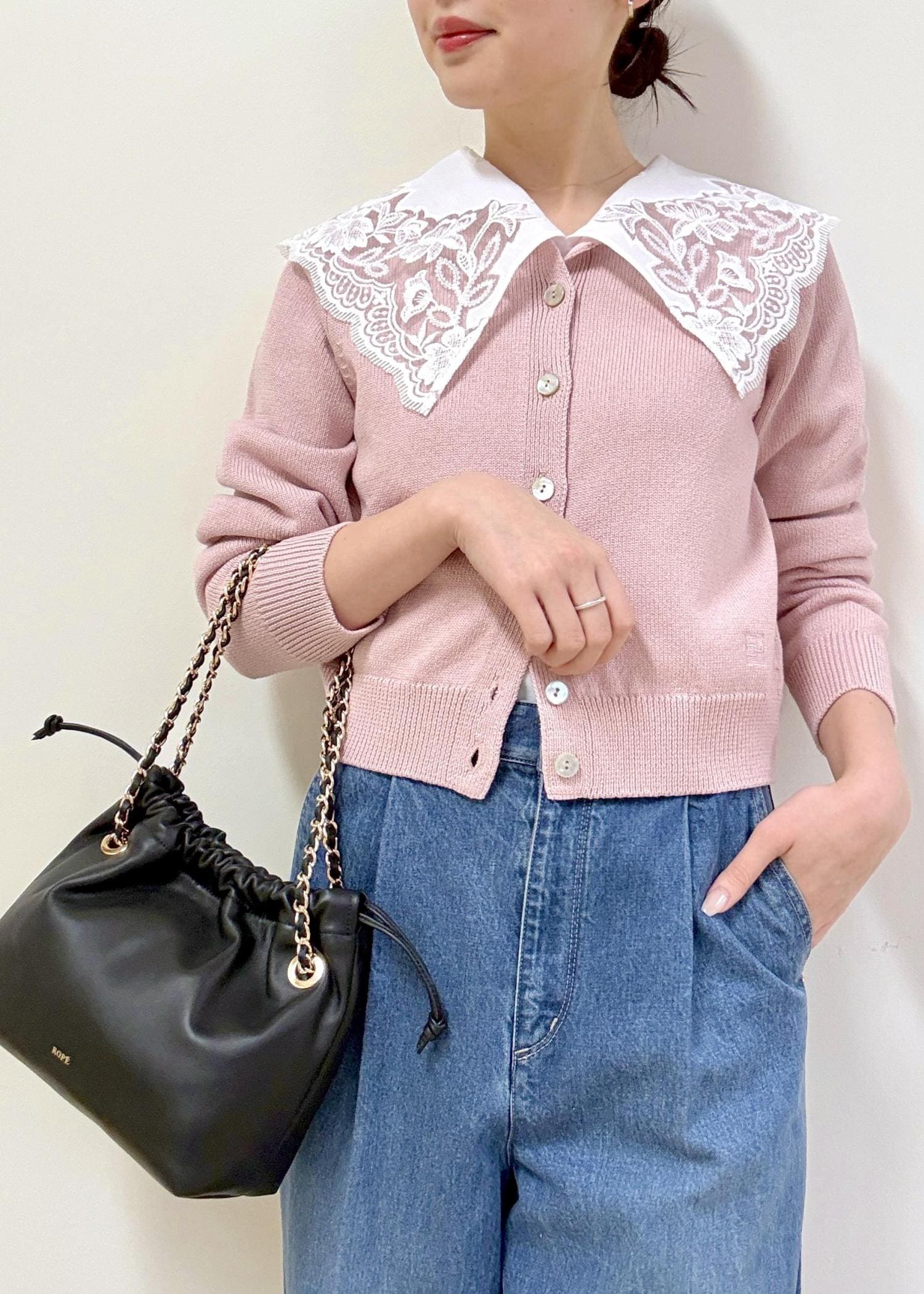 ROPÉオーガニックコットンニットカーディガン/イージーケアピンク / F¥25,300レビューFサイズを着用しています。