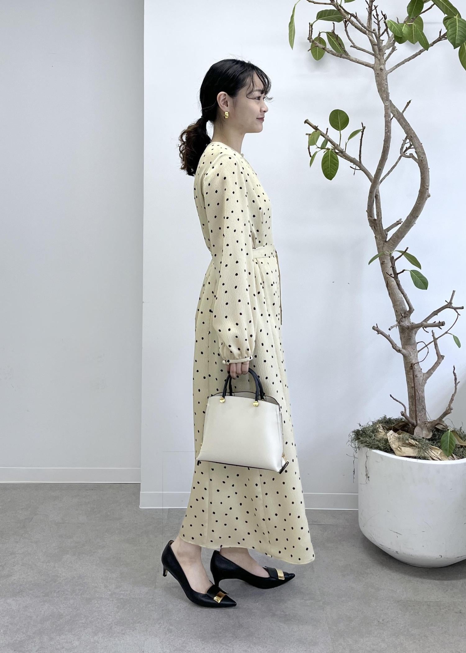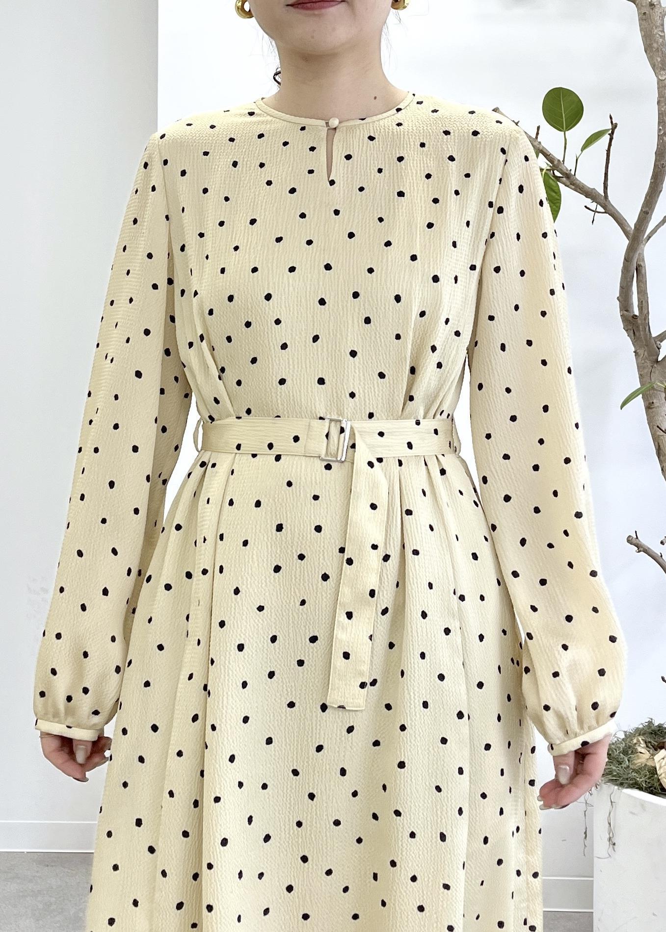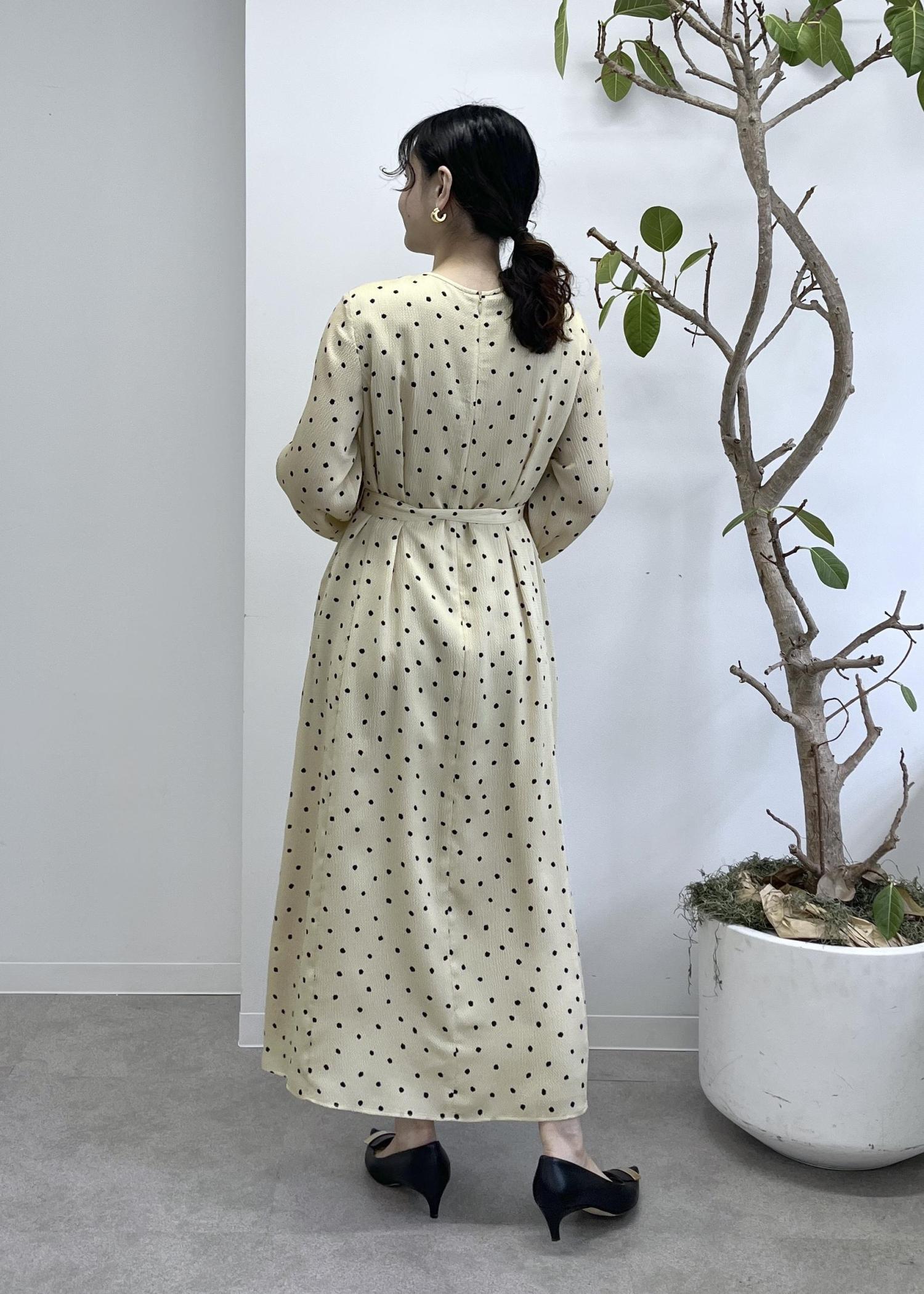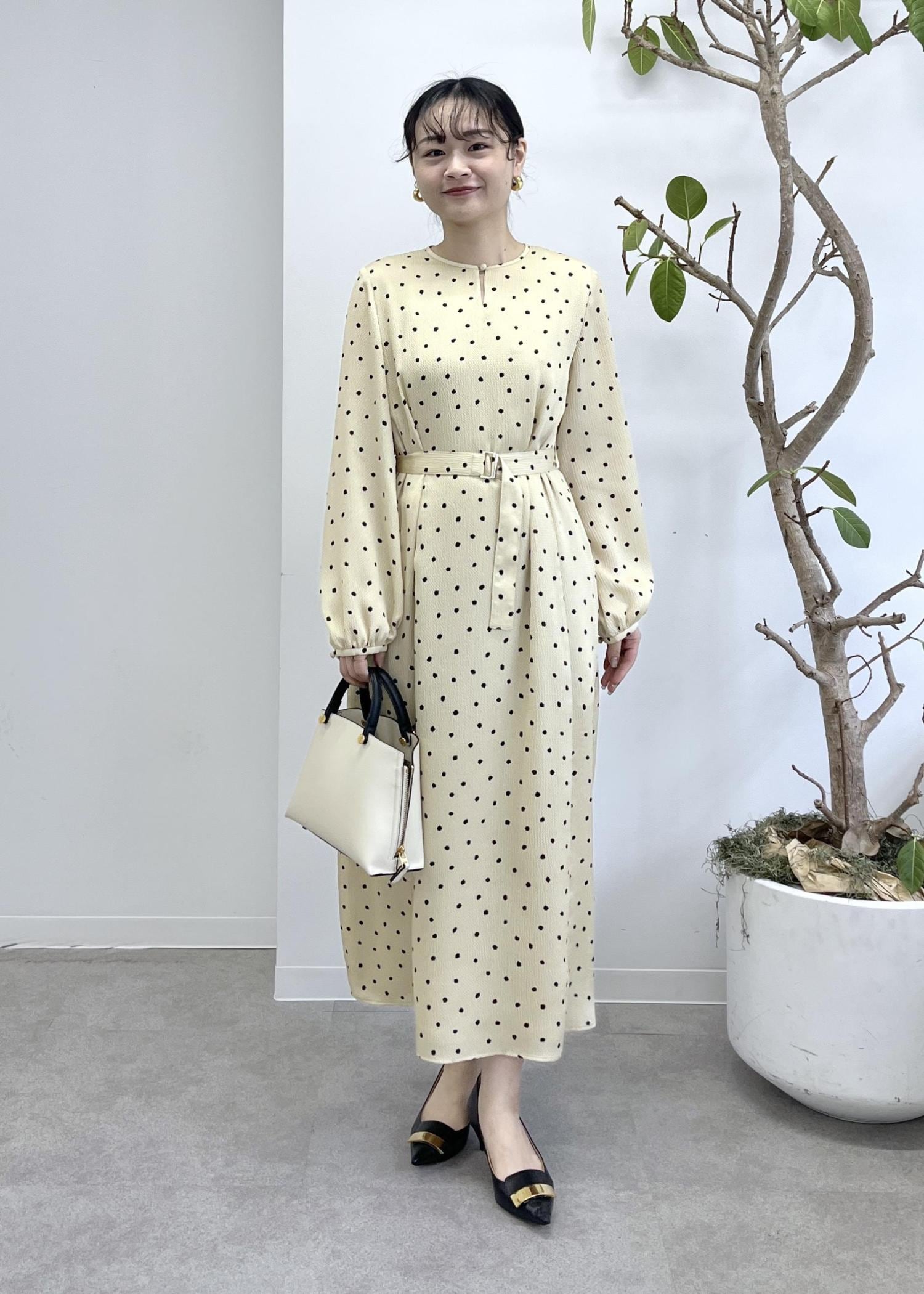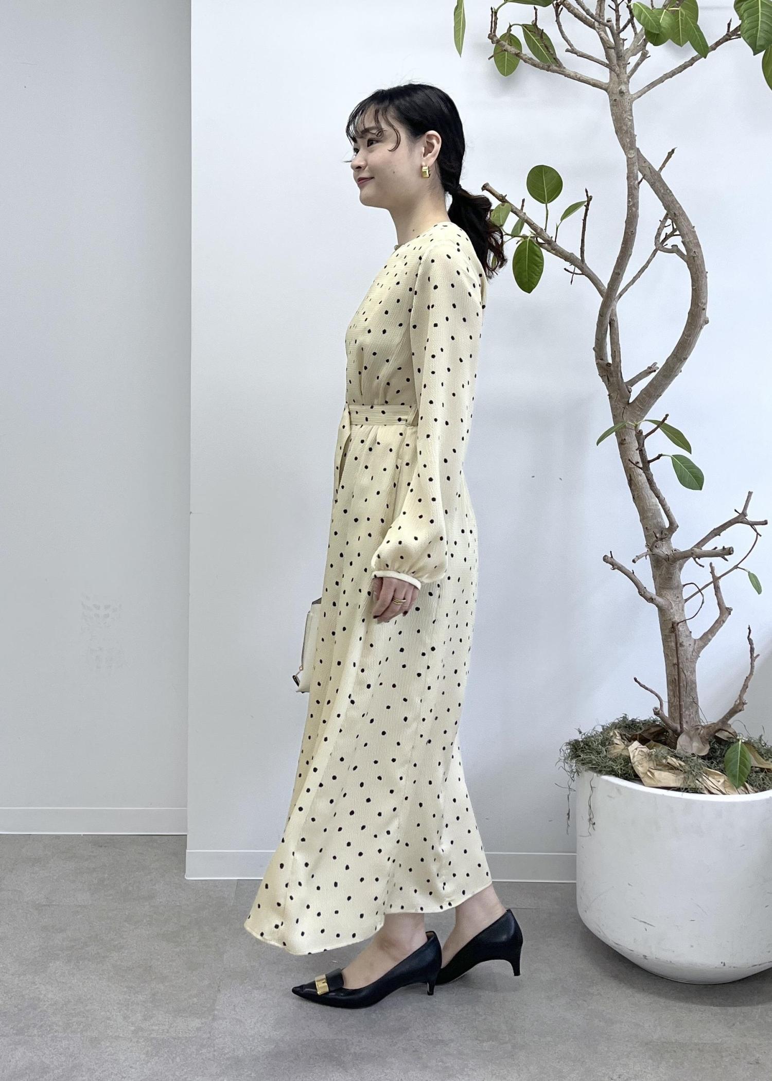 ROPÉドットプリントウエストベルトワンピースベージュ / 38¥41,800レビュー38サイズを着用しています。