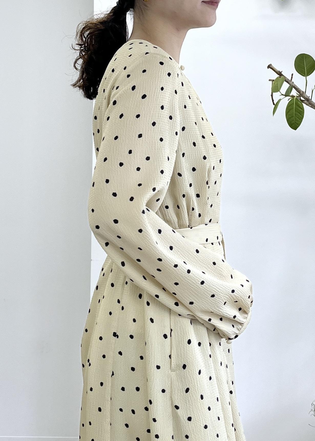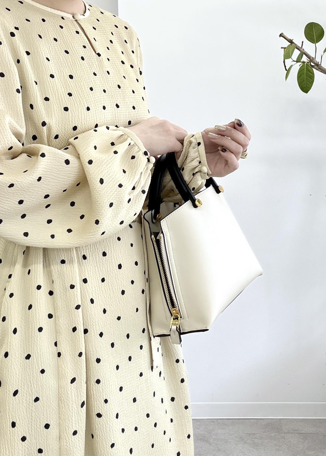 凹凸感のある生地で、ドット柄ですが子供っぽくならず春らしく華やかに着用できます♪ -