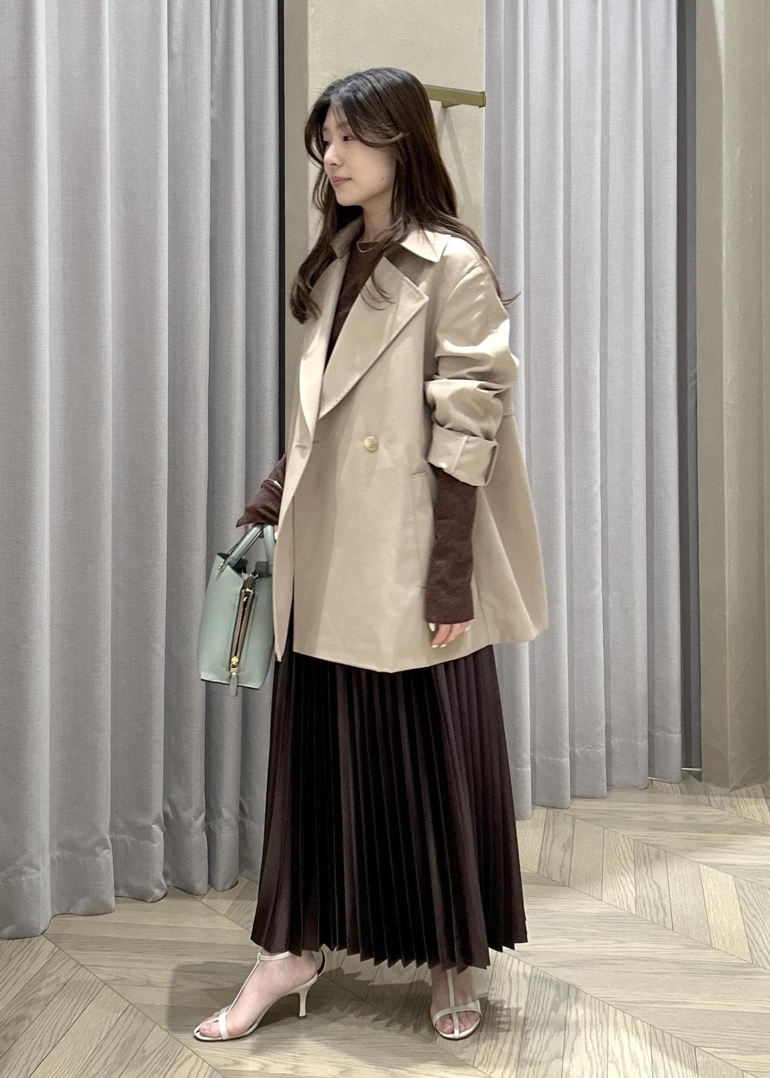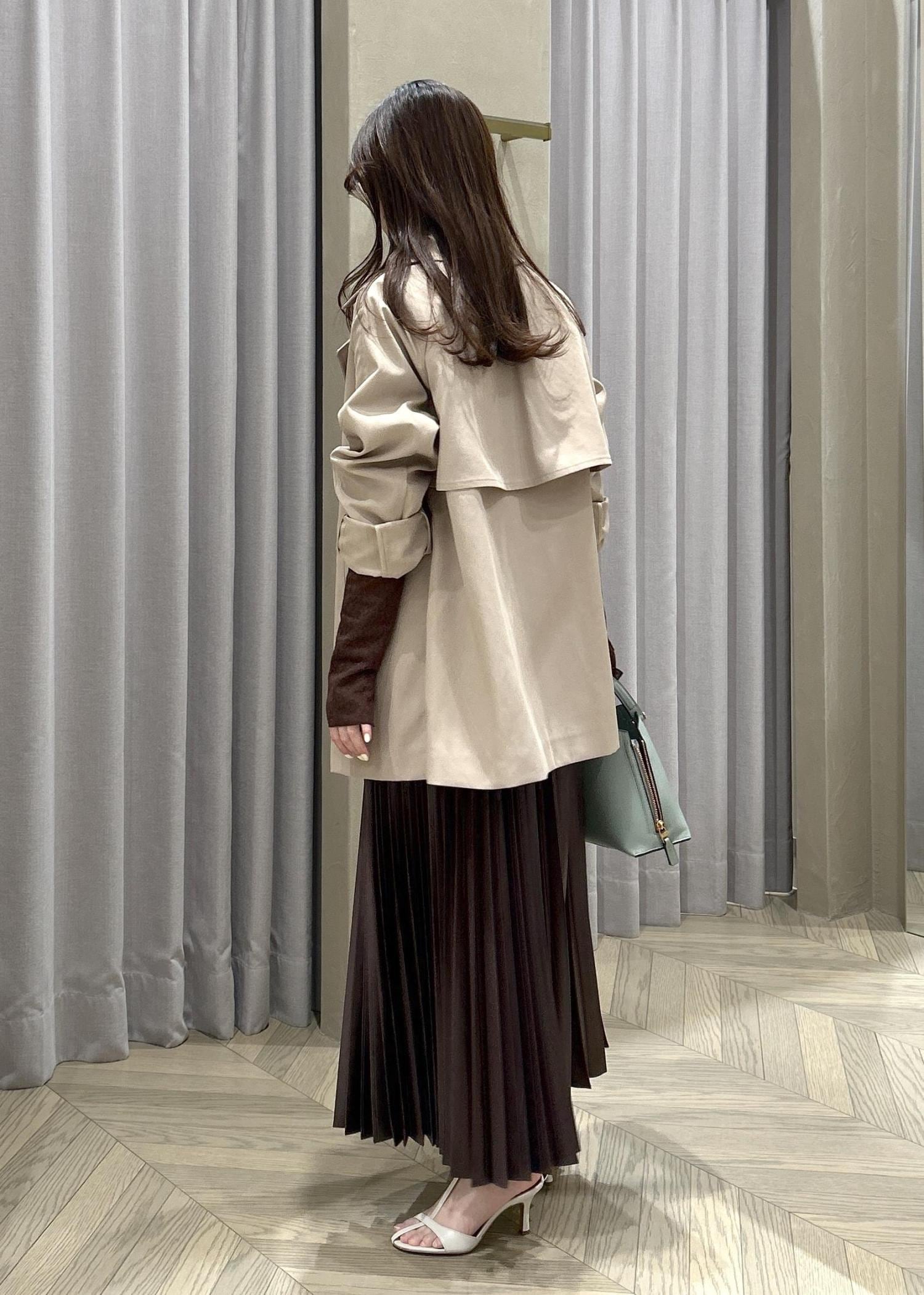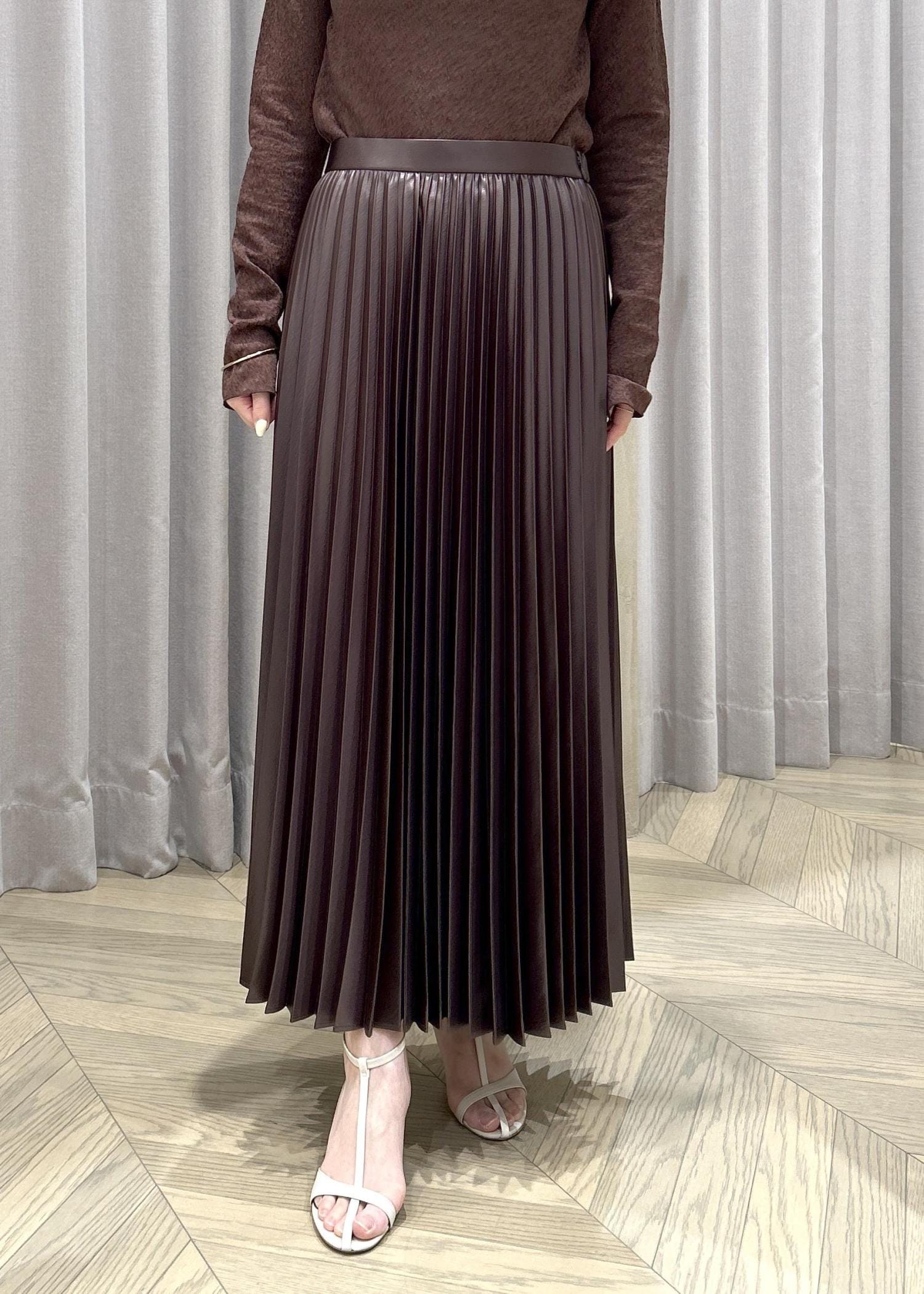 ROPÉシャイニープリーツスカート/イージーケアダークブラウン / F¥26,400レビュー151㎝の私が着用して、くるぶし上くらいの丈感です。