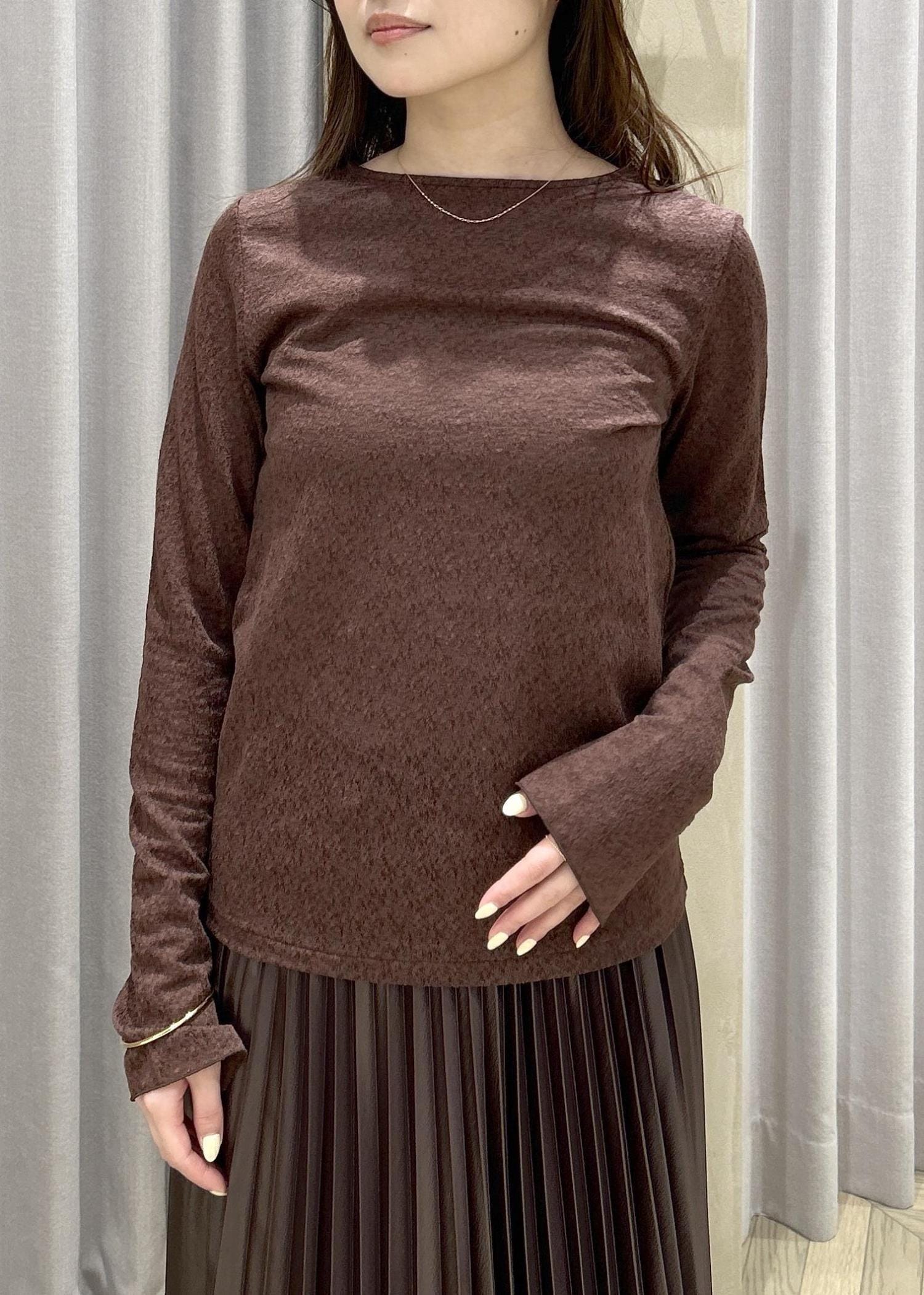 ROPÉコットンシアーロングスリーブカットソー/イージーケアブラウン / F¥16,500レビュー腰骨が隠れるくらいの丈感で、袖丈は手が半分隠れるくらいの長さです。