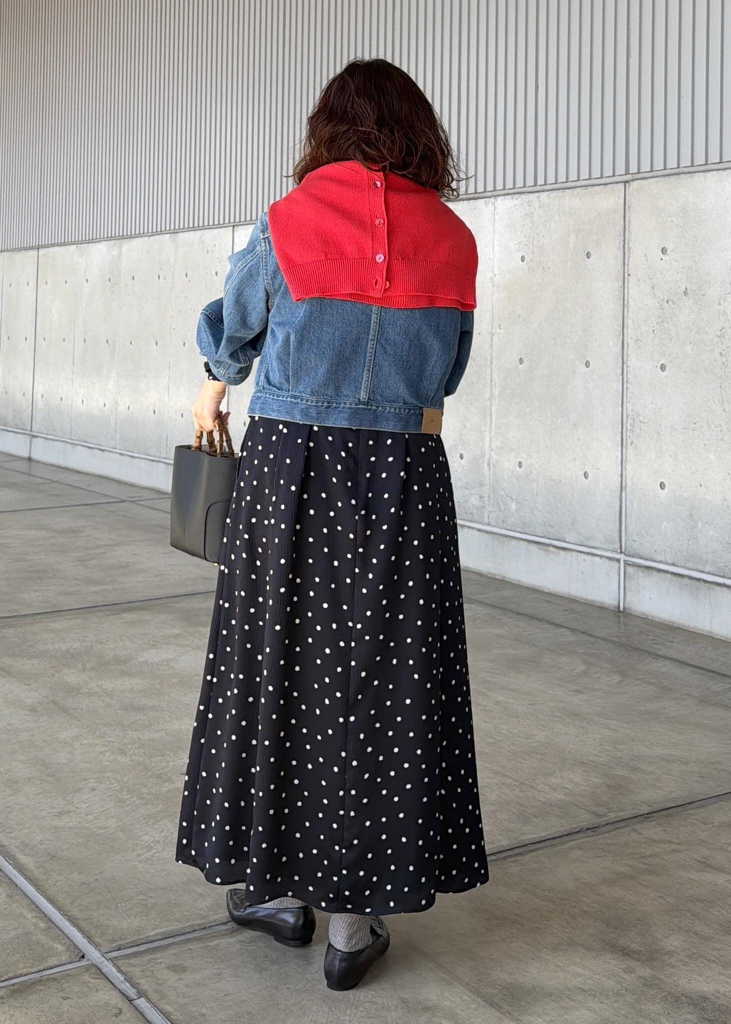 生地の光沢がクラシカルなワンピースです。ドット柄ですが甘くなり過ぎないようにウエストにタックが入っており、ベルトでシルエットにメリハリ出すことが出来ます。カジュアルなアイテムとも相性が良く、色々なシーンでで着ていただけるアイテムです。 -