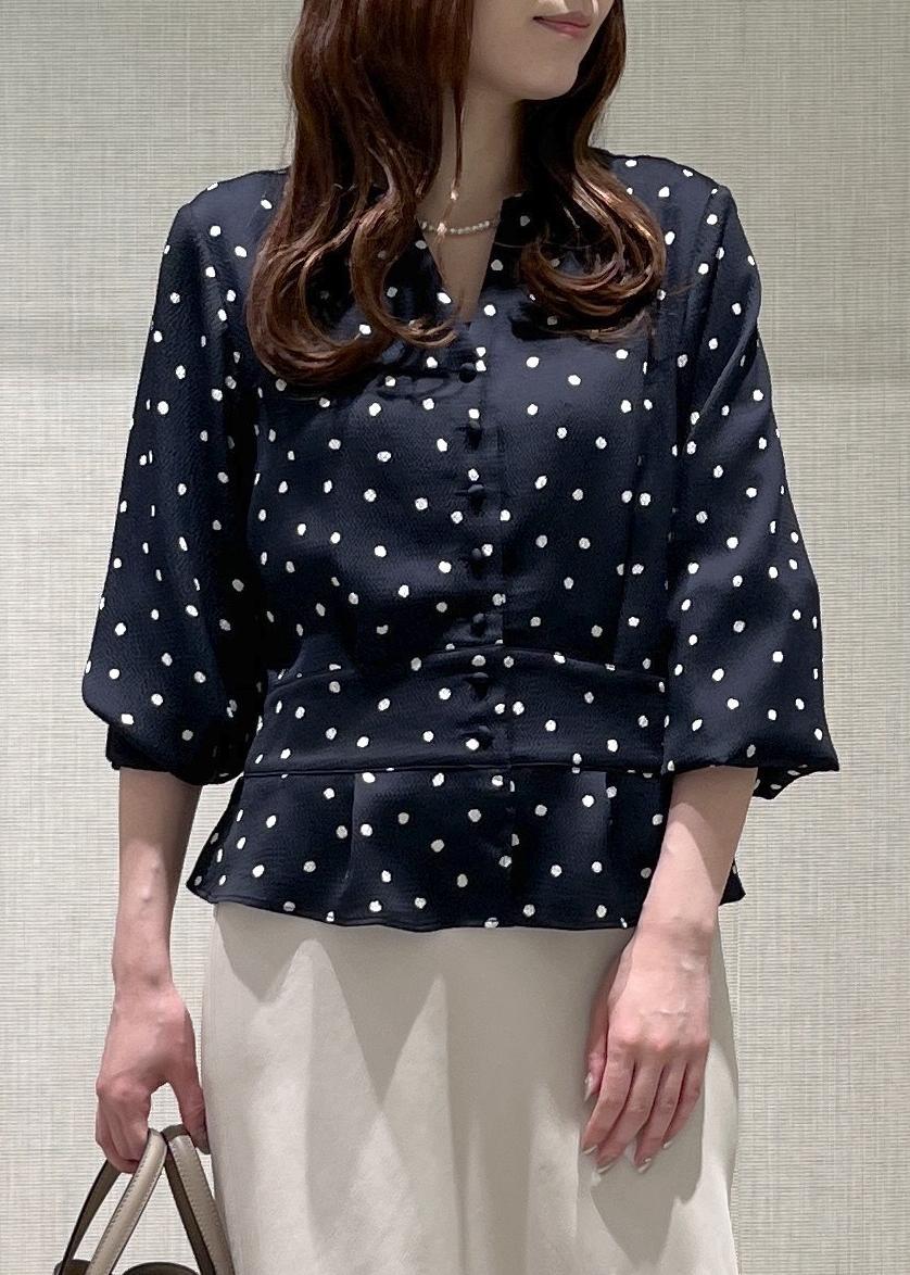 ROPÉドットプリントペプラムブラウス/イージーケアネイビー / 38¥26,400レビュー身長157cmで38サイズ着用