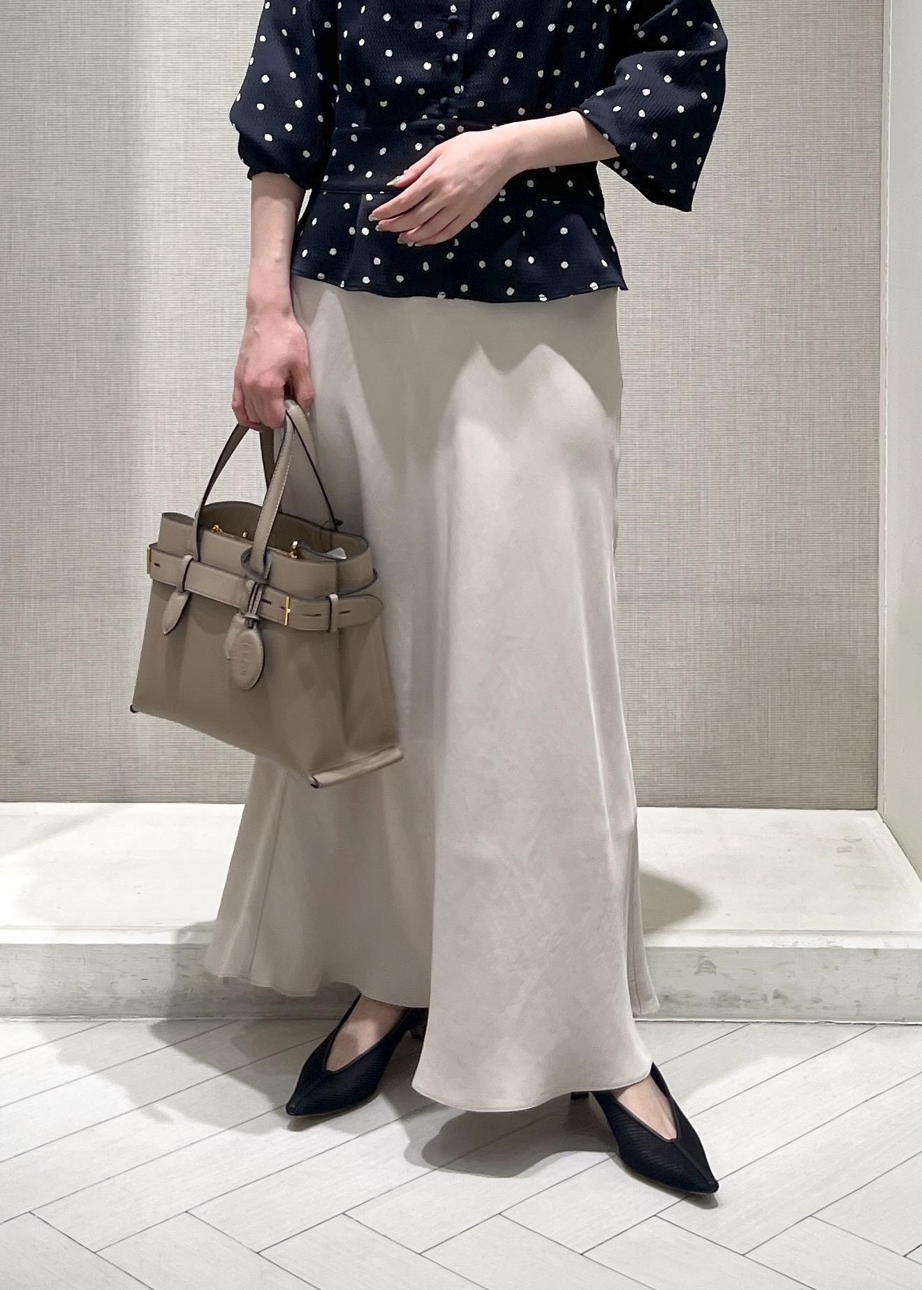 軽やかで落ち感のある綺麗なラインのマーメイドスカートを合わせて、春のおでかけコーディネートにしてみました♪