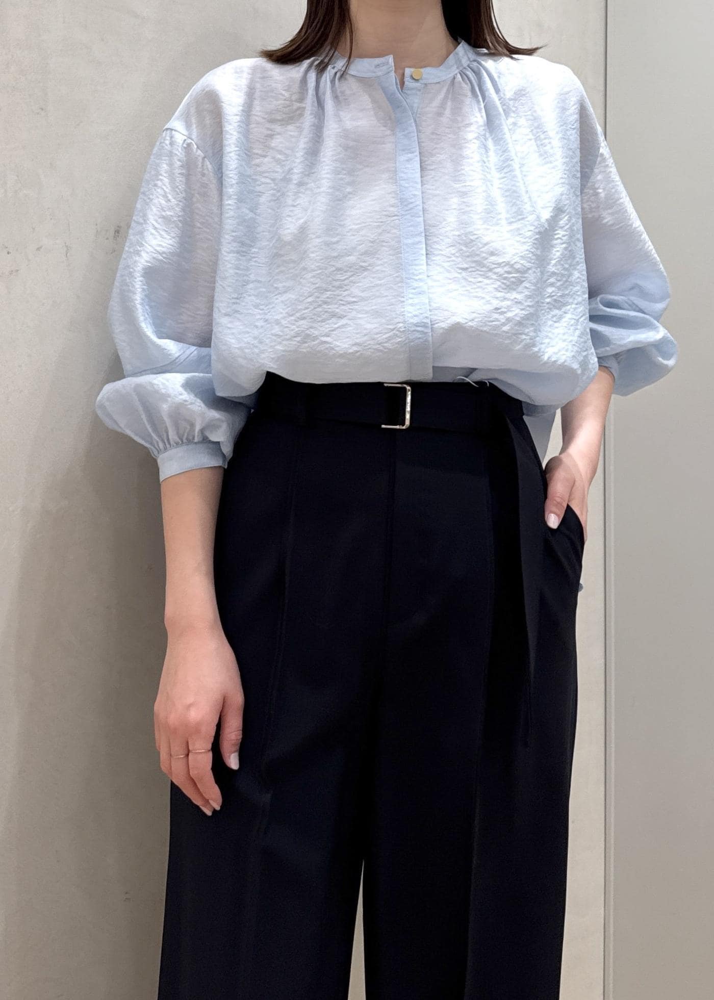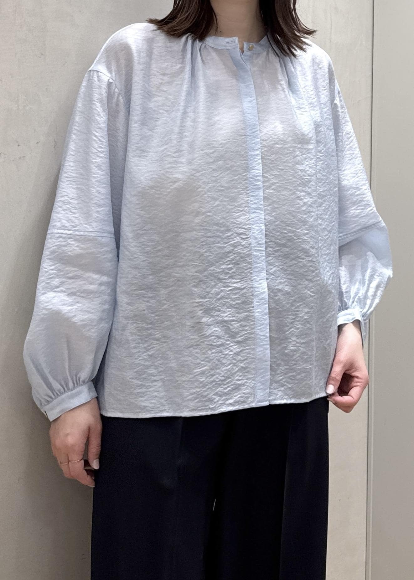 NEW!ROPÉキュプラシルクボリュームスリーブブラウス/イージーケアサックス / F¥19,800レビューツヤのあるシルク混の素材。