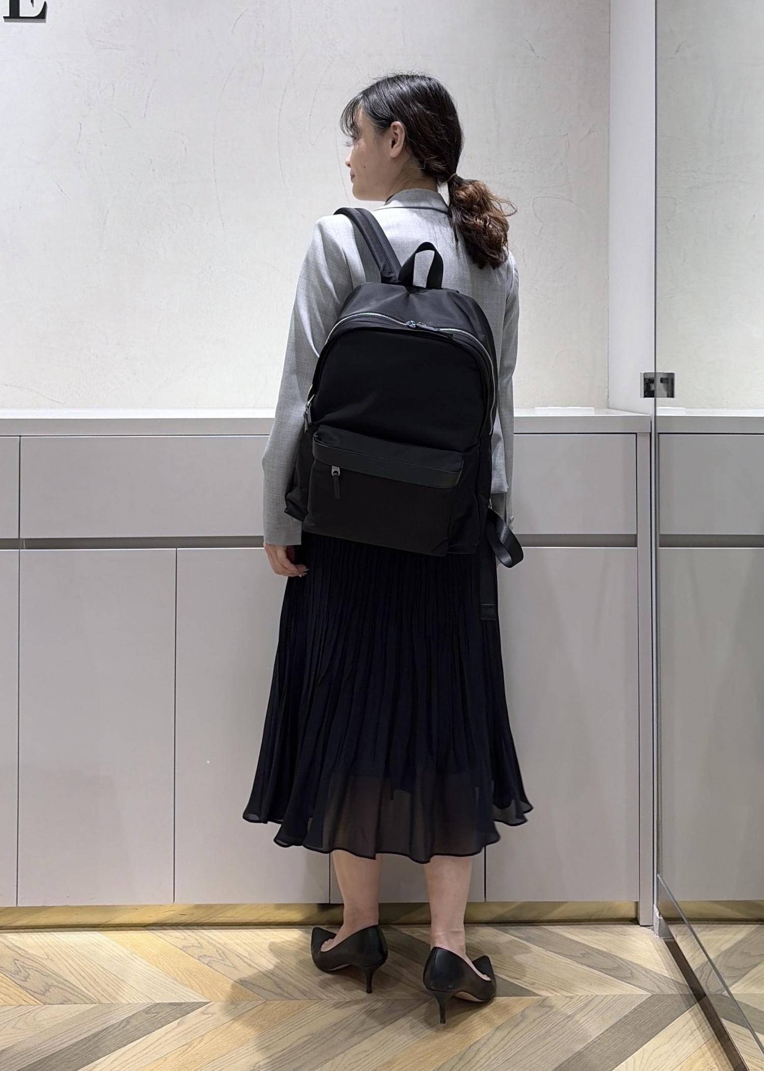 14インチPCが入るサイズ。22Lと大容量でありながら、品のある素材感とデザインです◎