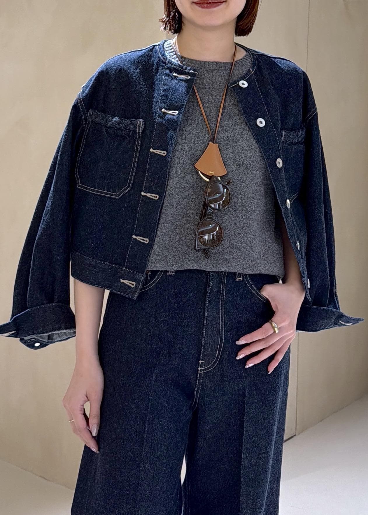 ROPÉノーカラーデニムジャケット(岡山デニム)/セットアップ対応・イージーケアネイビー / F¥39,600レビューデニム老舗生地メーカー『KUROKI』のデニムジャケット。