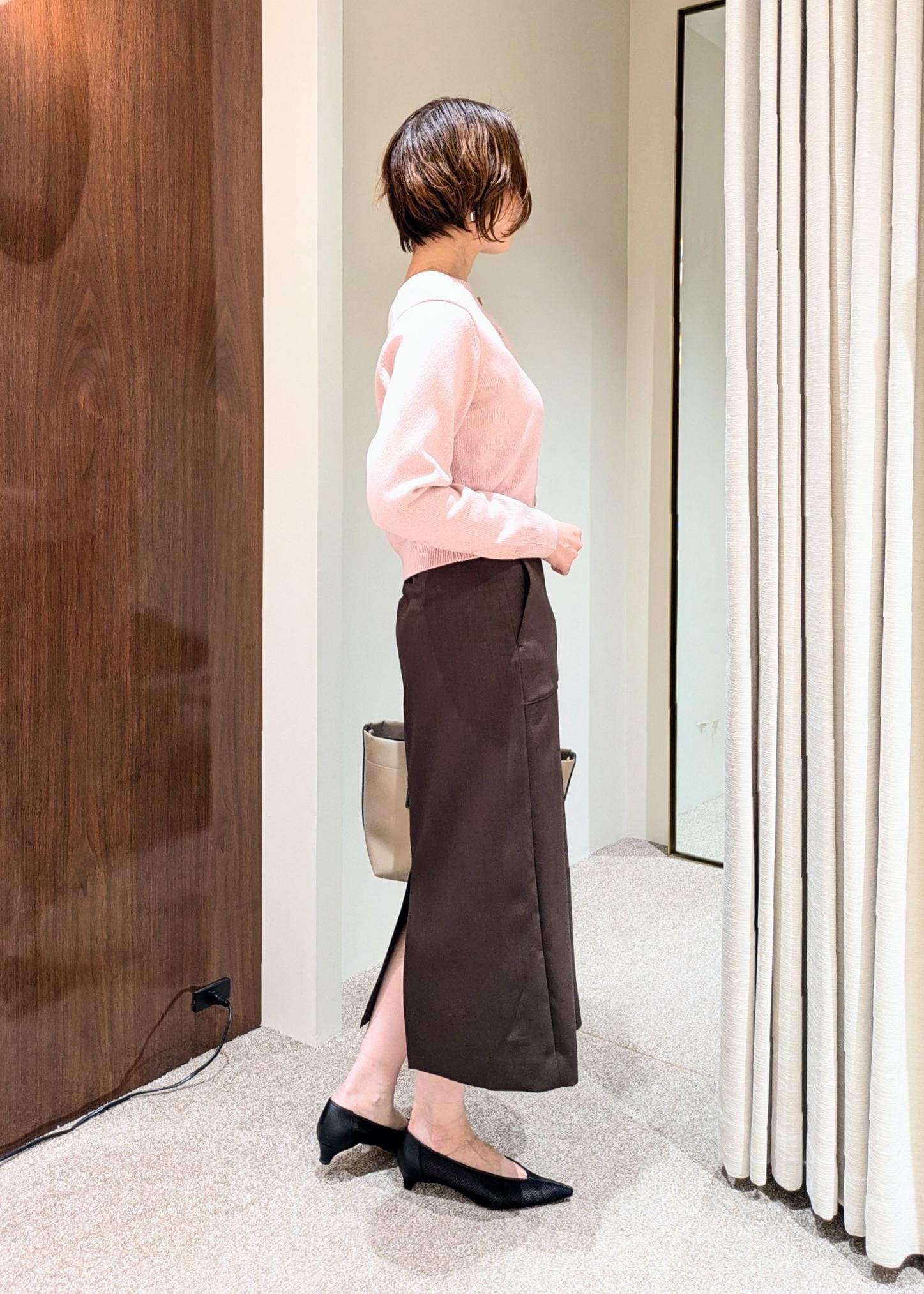 ROPÉ[美人スカート]ダブルクロスポケット付きタイトスカート/イージーケア・26SSダークブラウン / 38¥19,800レビュー身長167cmで38サイズ着用。