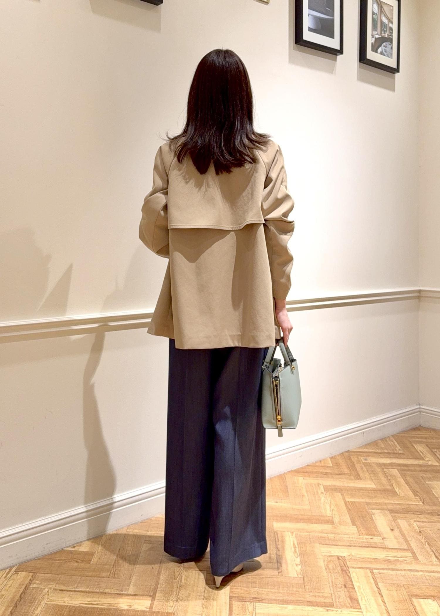 撥水加工がされているトレンチコートは、ジャケットを合わせた通勤シーンにはもちろん、ご旅行等のアクティブなお出かけシーンにも◎