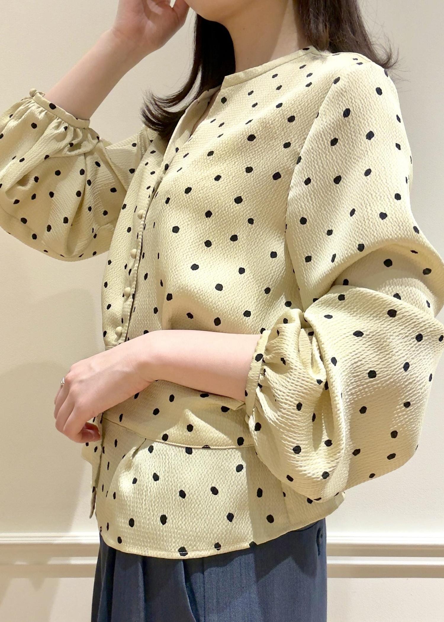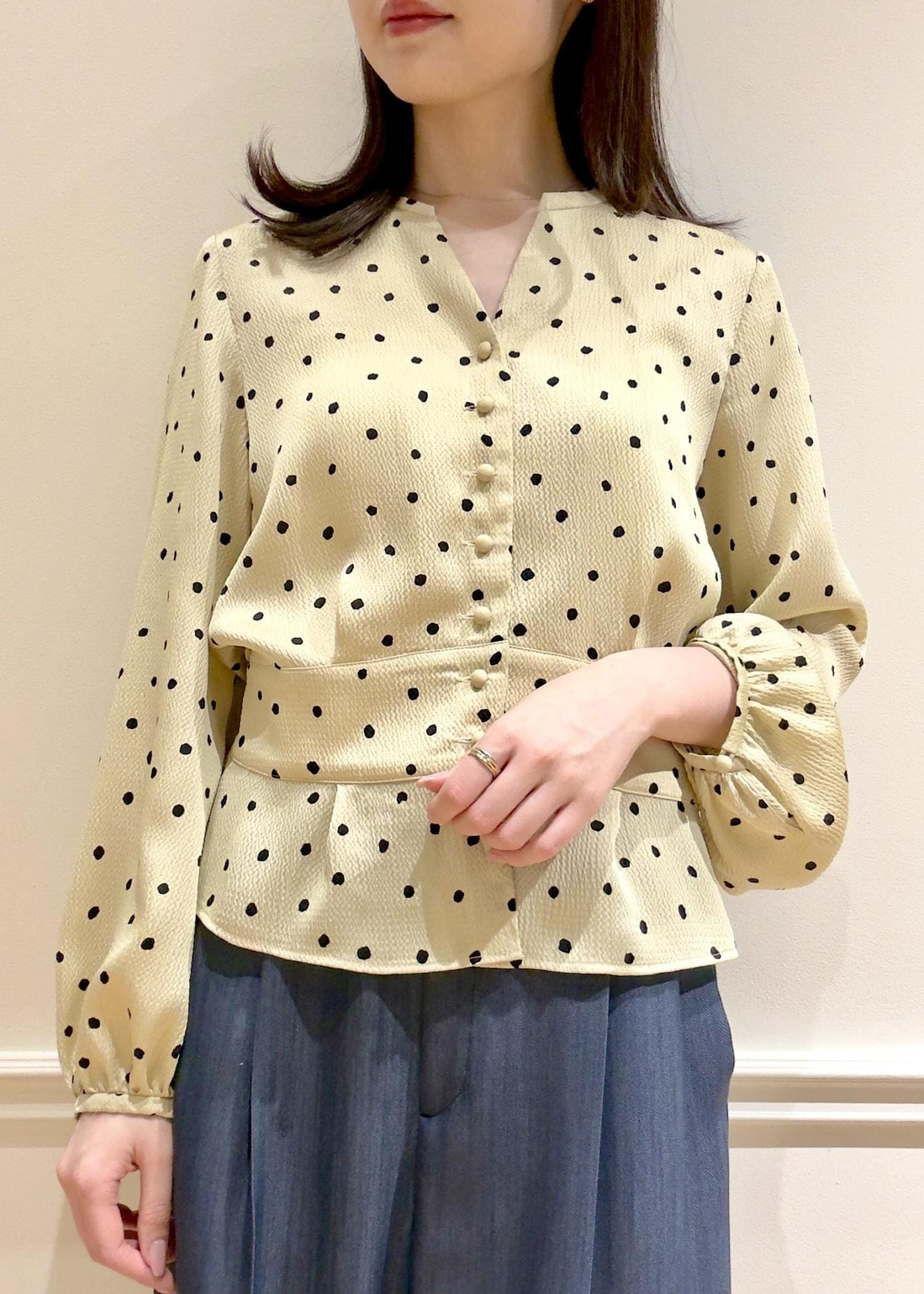 ドットプリントペプラムブラウス/イージーケア