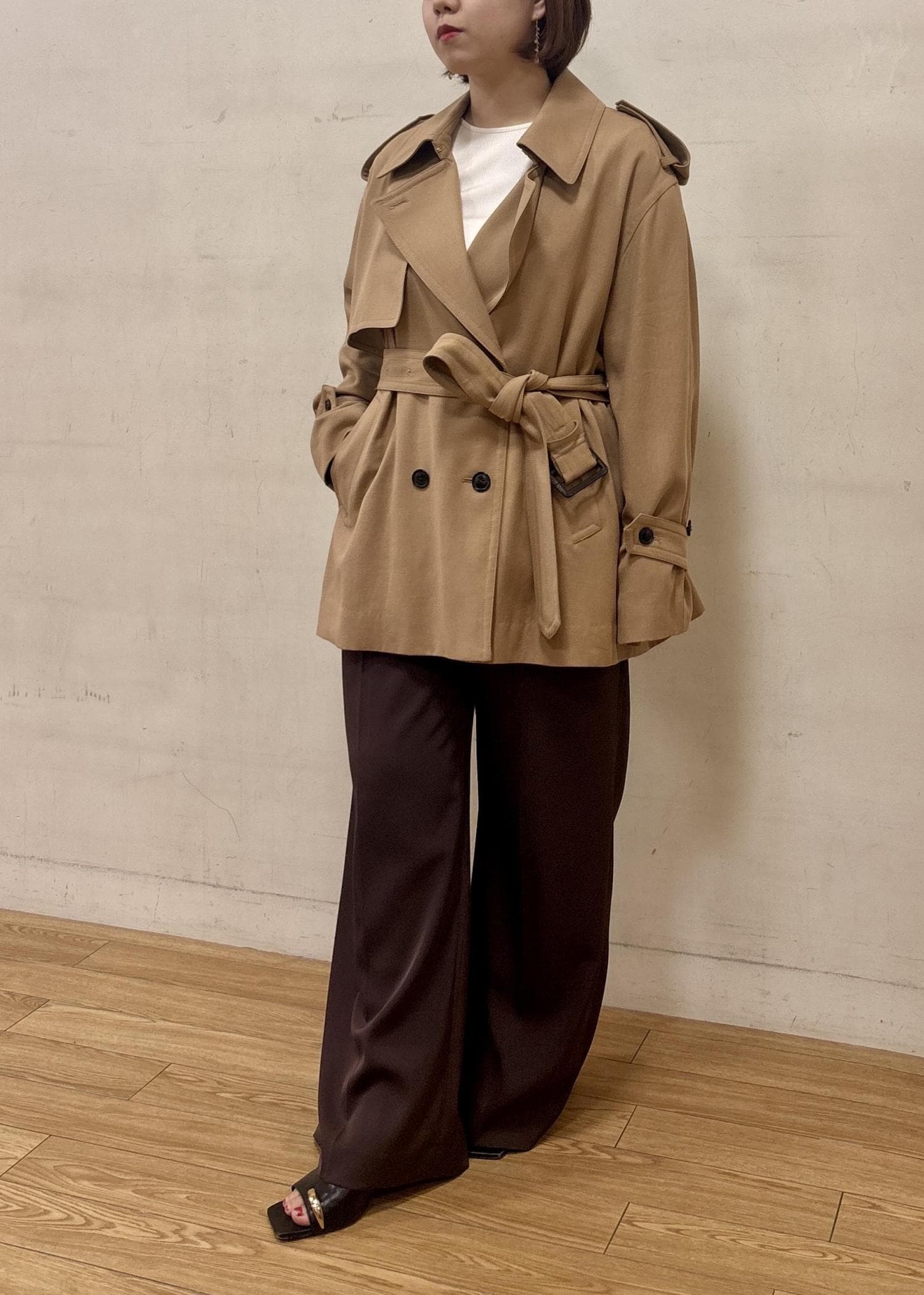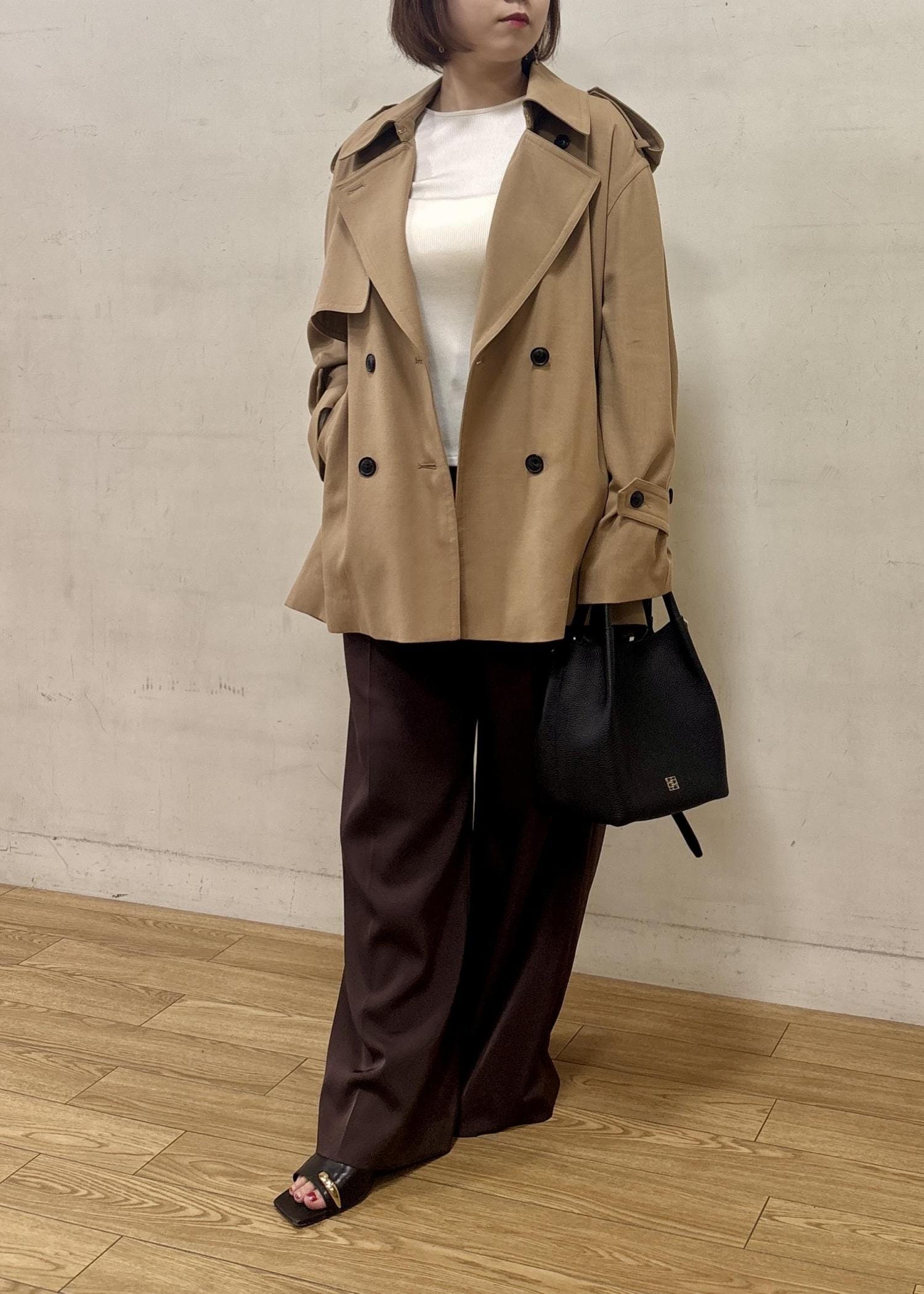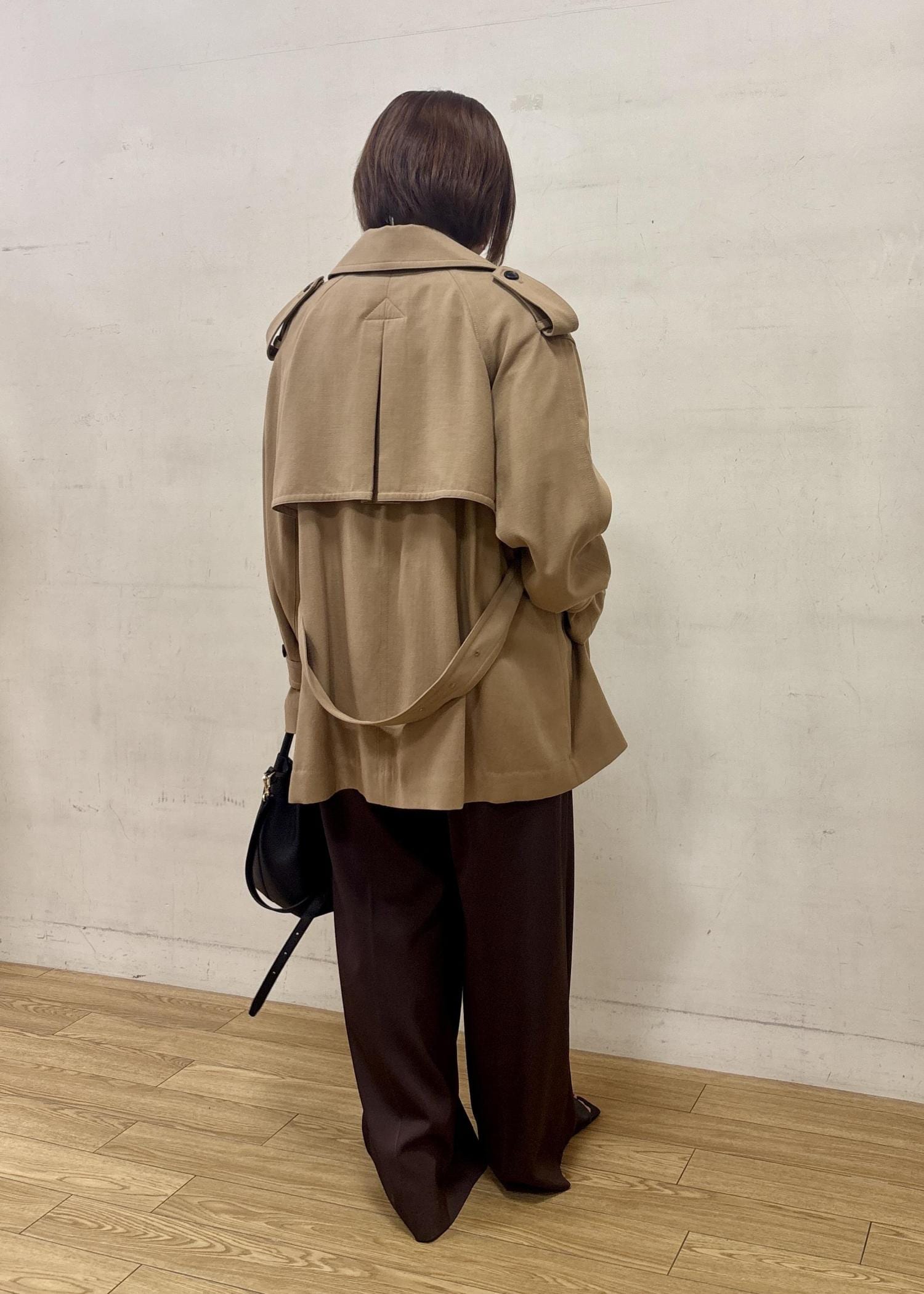 従来のトレンチコートの様な重みはなく、上品なハリ感があります。