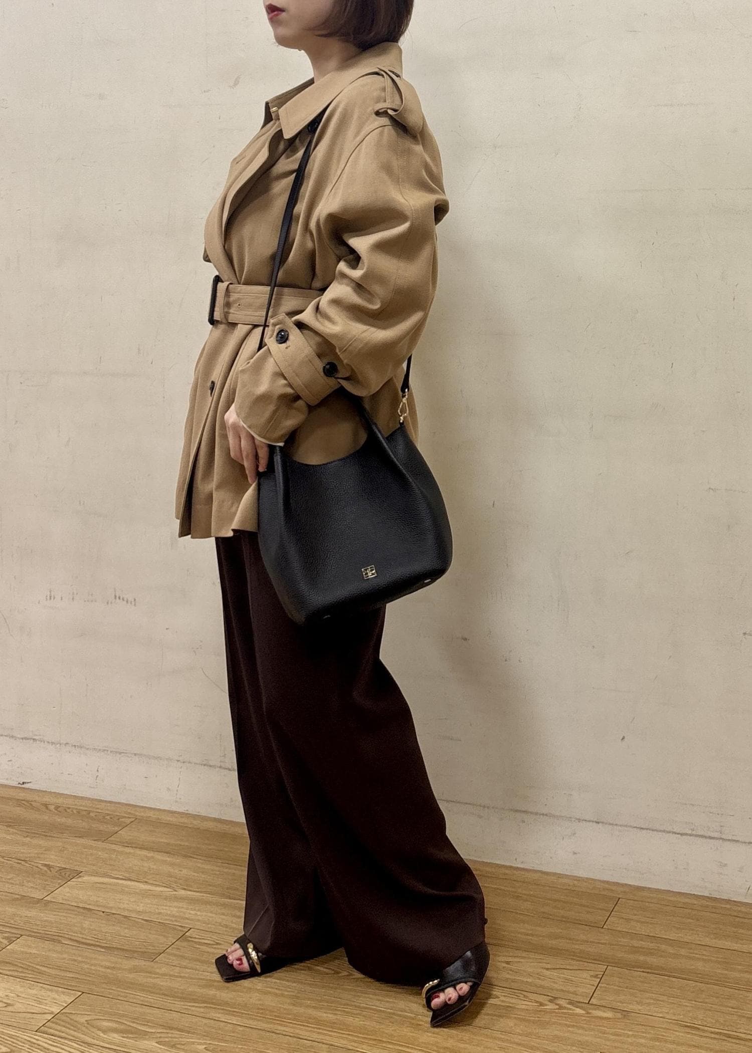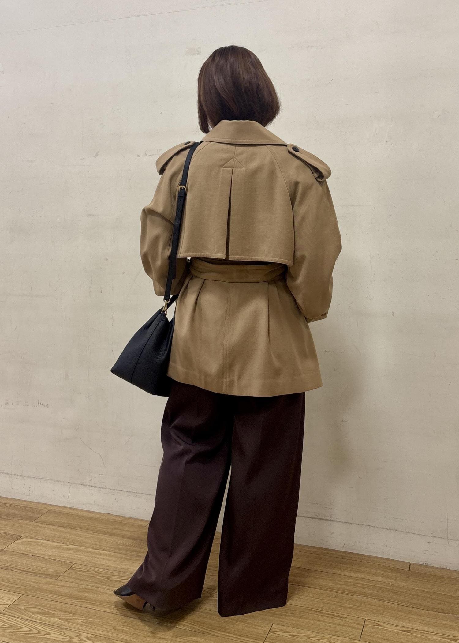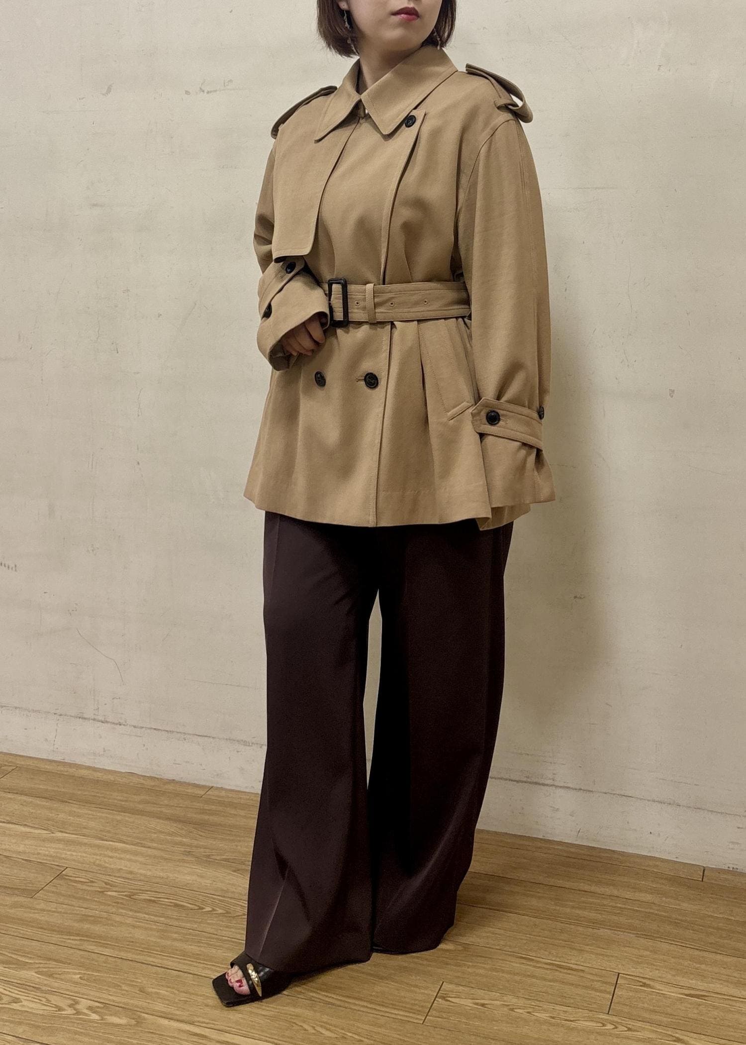 従来のトレンチコートの様な重みはなく、上品なハリ感があります。