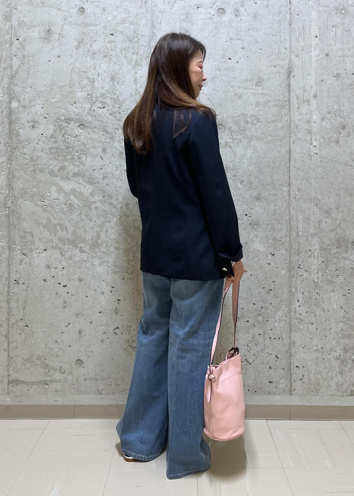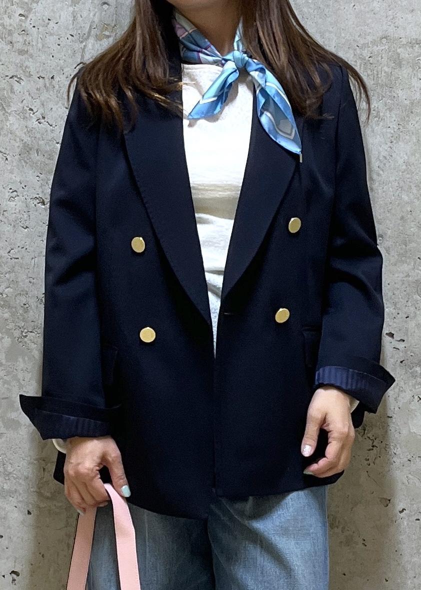 着まわしの効くネイビーのジャケットはデニムと合わせて、カジュアルにしました。