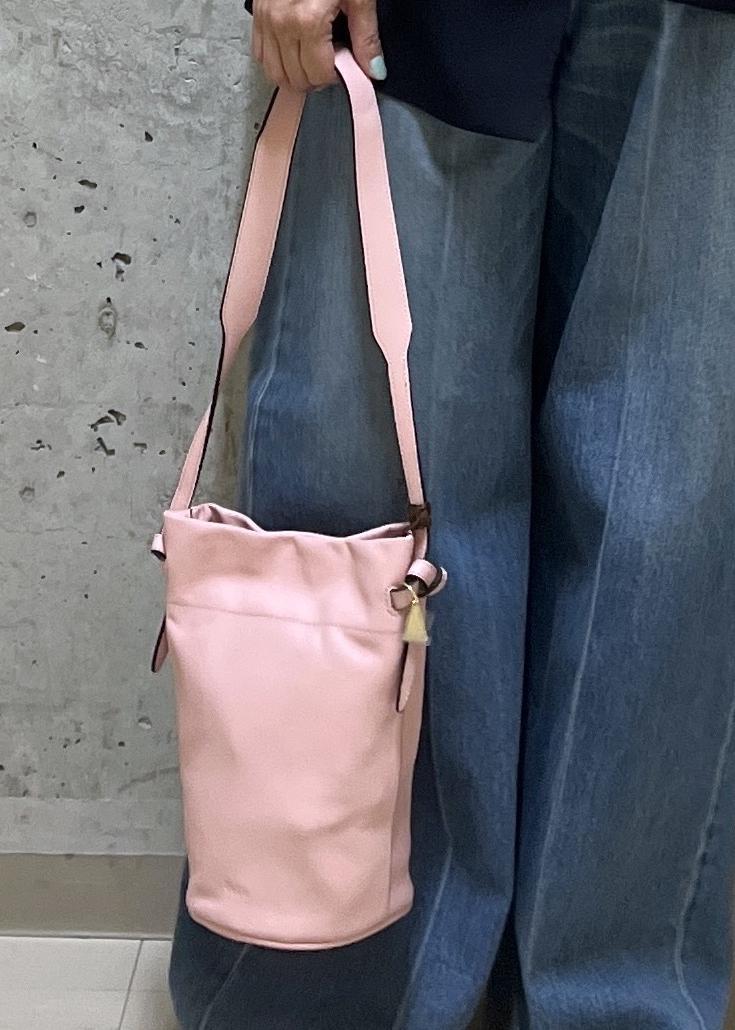 ROPÉ【teau・牛革・マルチWAY】panier vine shoulder bag/持ち手長さ調整可能ピンク / F¥39,600レビュー高さとマチがあるので、スマホ、財布、ミニポーチ、500mlのペットボトルなど小さく見えてしっかり入るサイズ感です。
