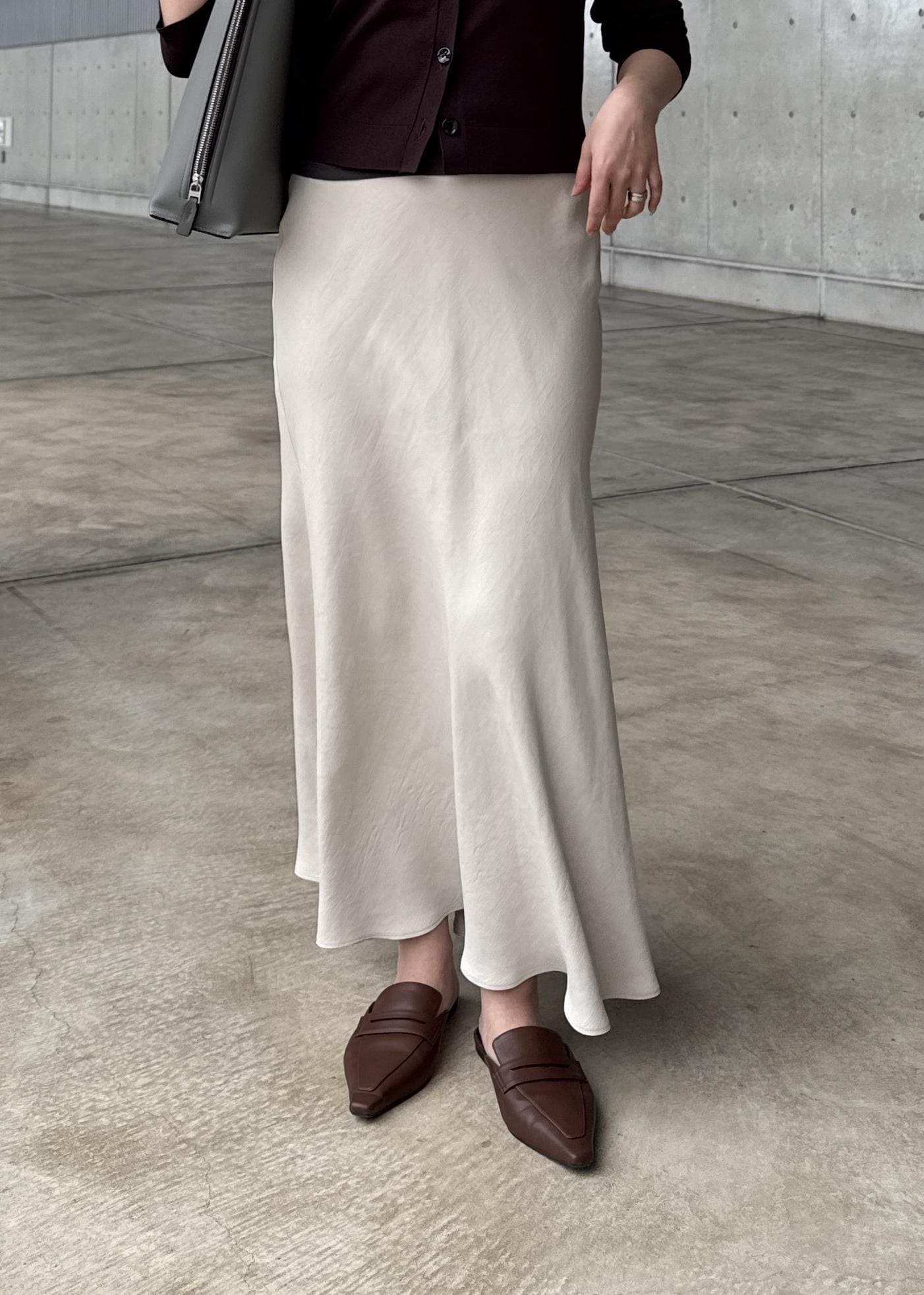 AWのシアーエアリー マーメイドスカートに似たデザインなので、ブーツ・スニーカー・パンプス・ローファーと、足元を選ばずに履いていただけるスカートデザインです。 -