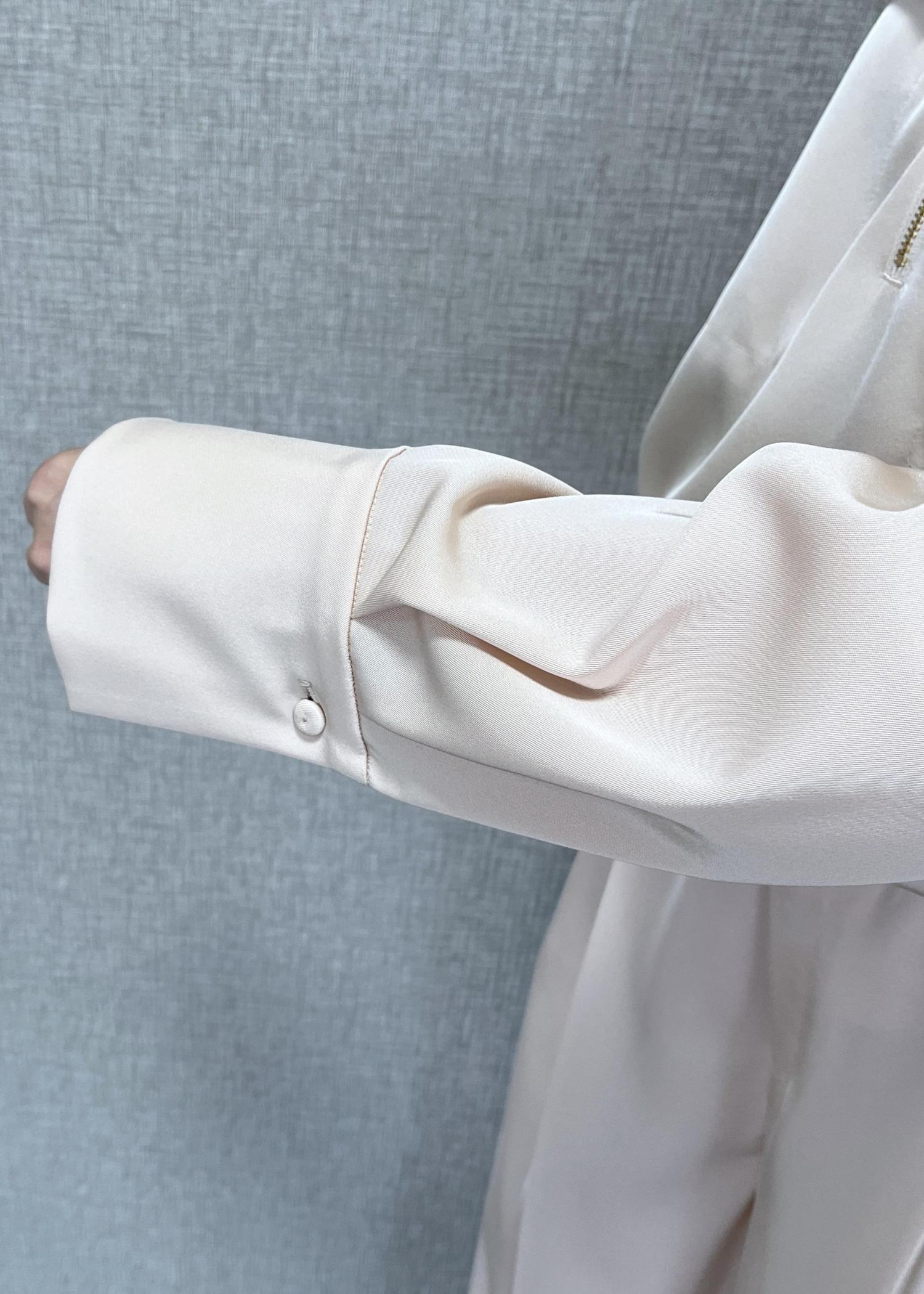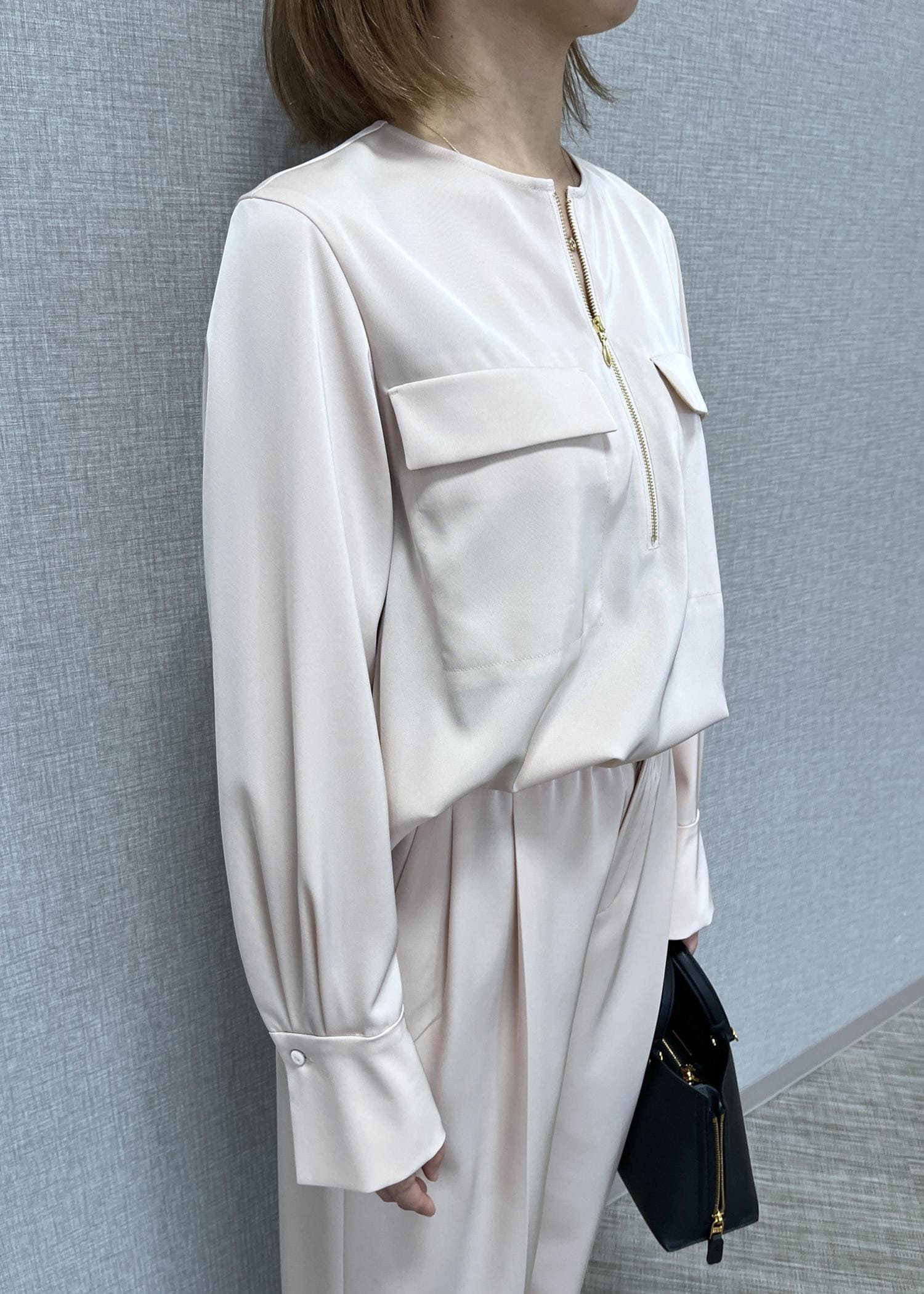 ROPÉフロントジップブラウス/イージーケア・セットアップ対応ピンク / 36¥24,200レビューハリ感のある素材で、生地がしっかりしておりサテンのようなツヤが特徴です。