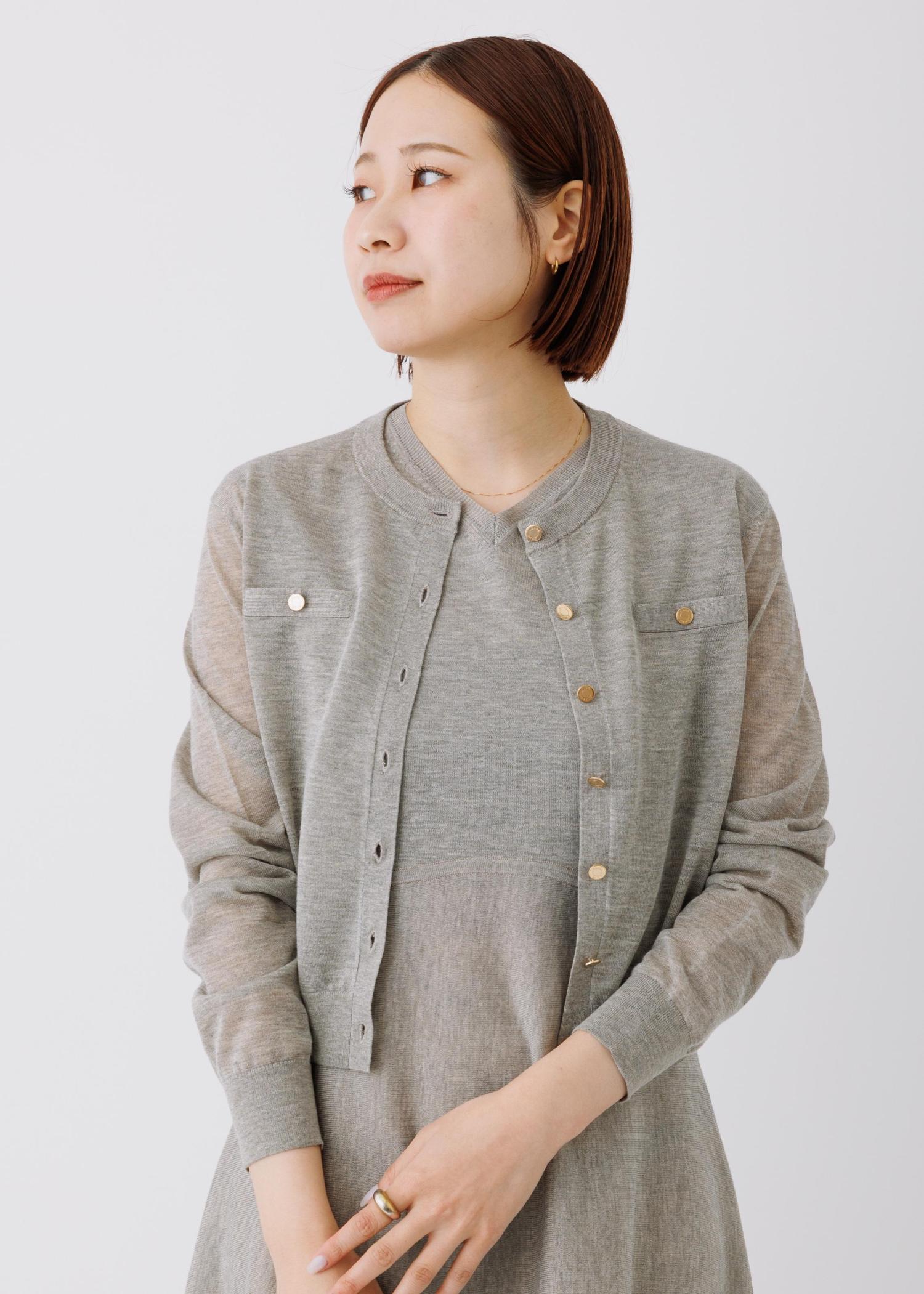 予約ROPÉLEVITA 金ボタンクルーネックシアーカーディガン/接触冷感・イージーケアベージュ / F¥20,900レビュー着丈はコンパクトで腰骨にかかるほどです。