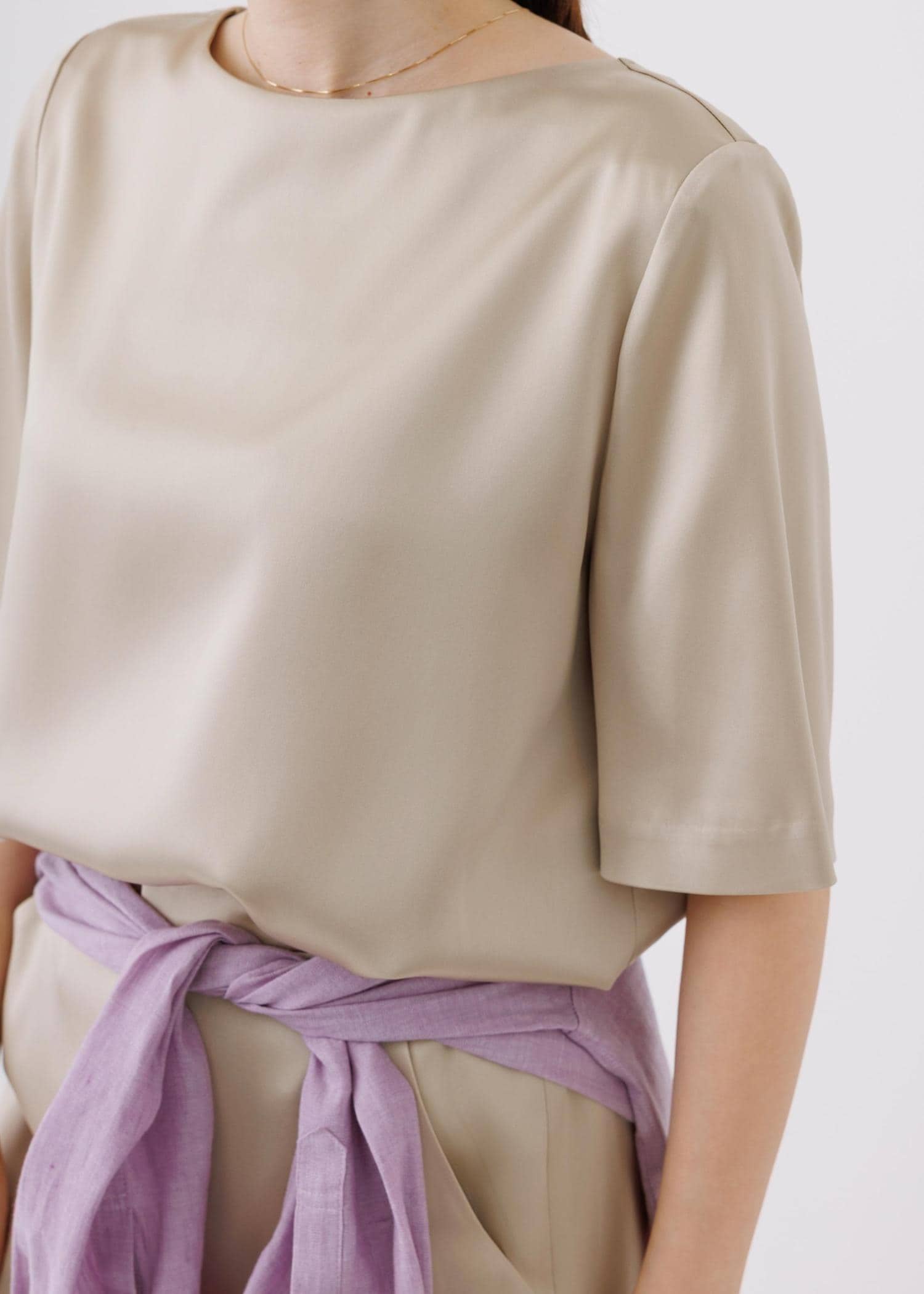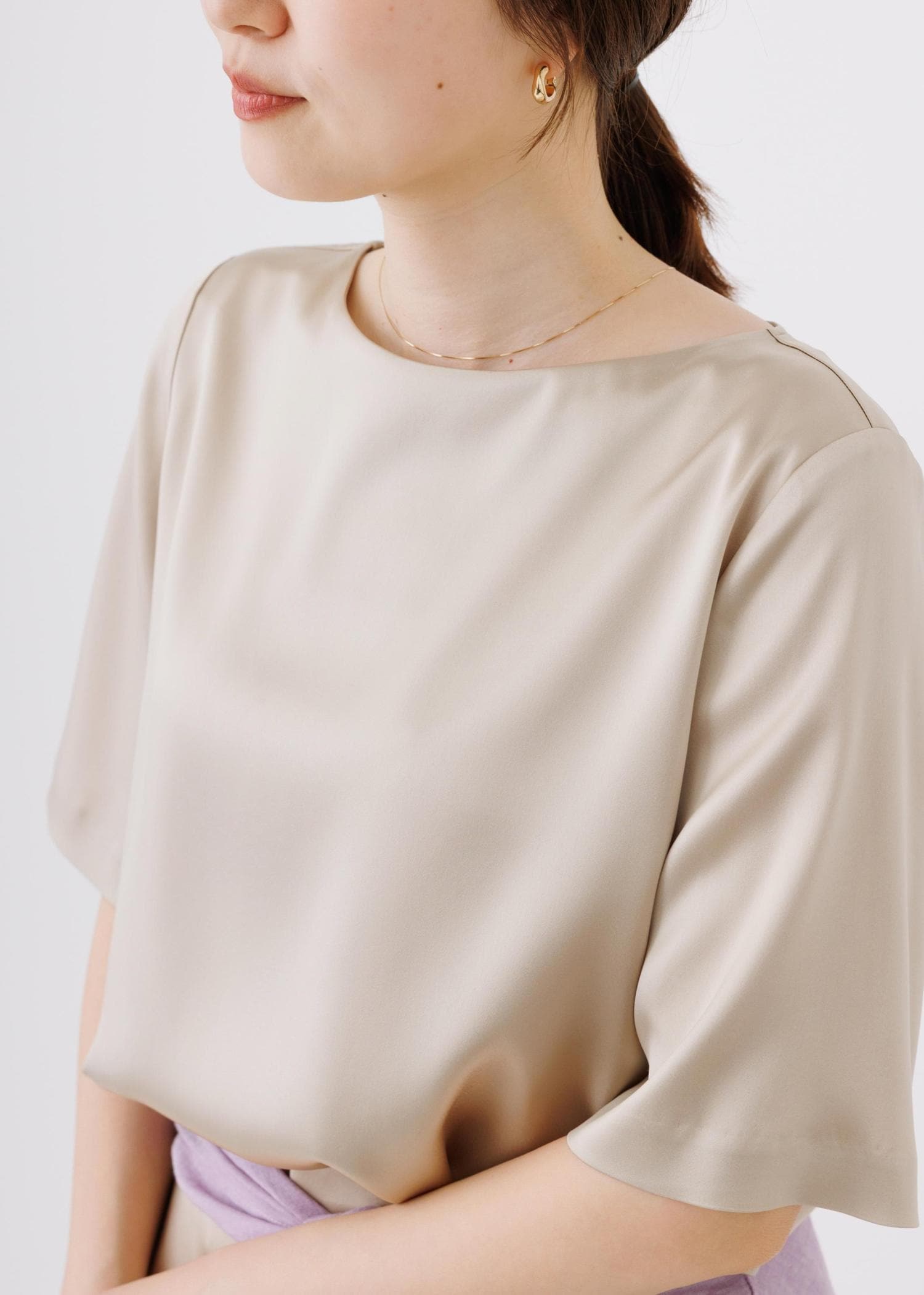 ROPÉドレープサテンティーブラウス/セットアップ対応・イージーケアベージュ / F¥20,900レビュー上品でしなやかなサテン素材。