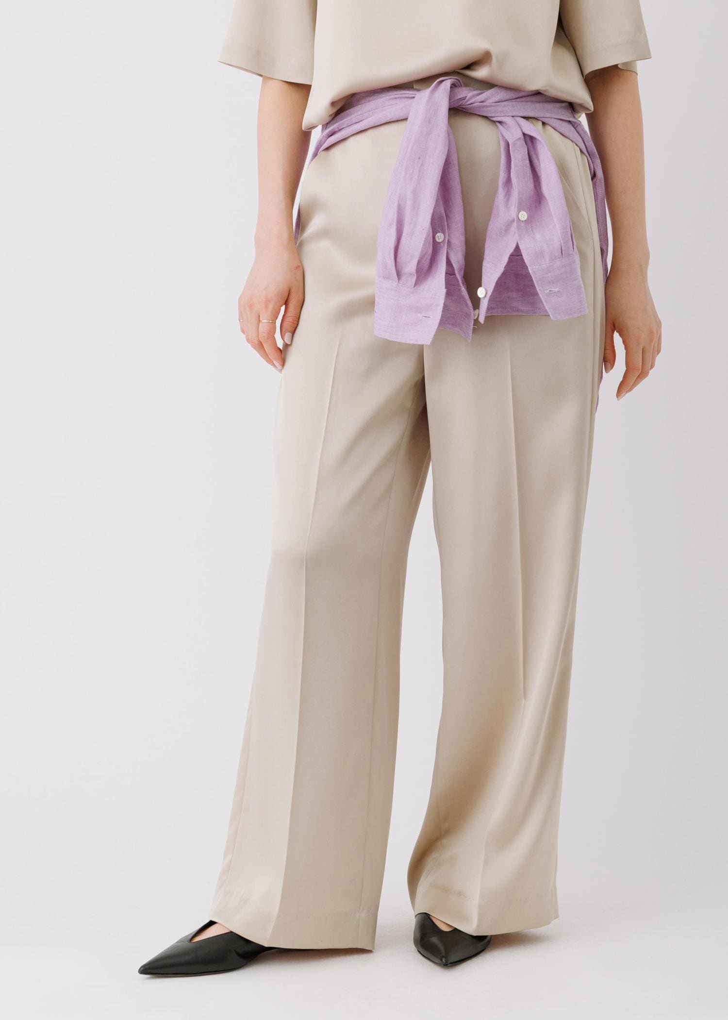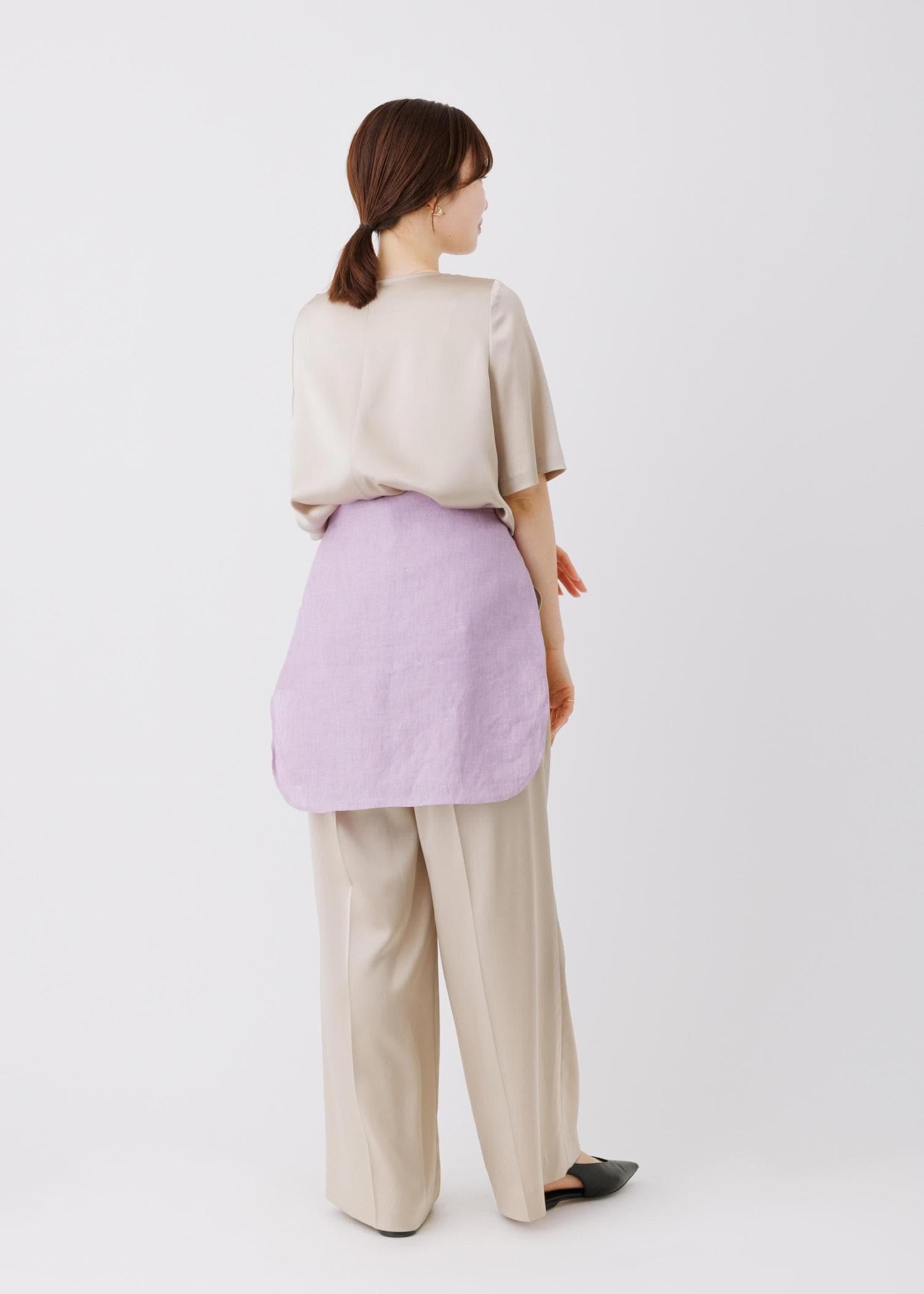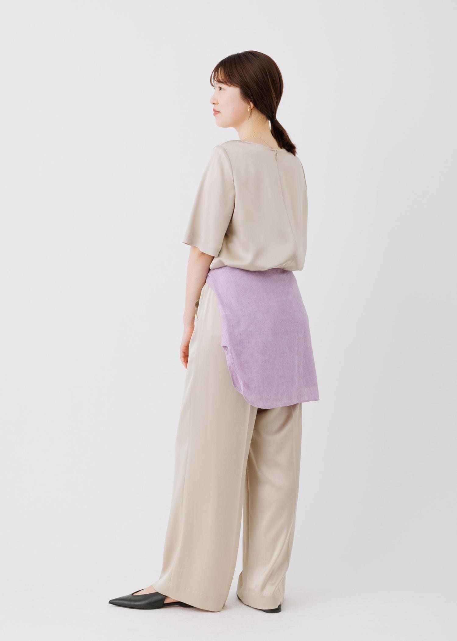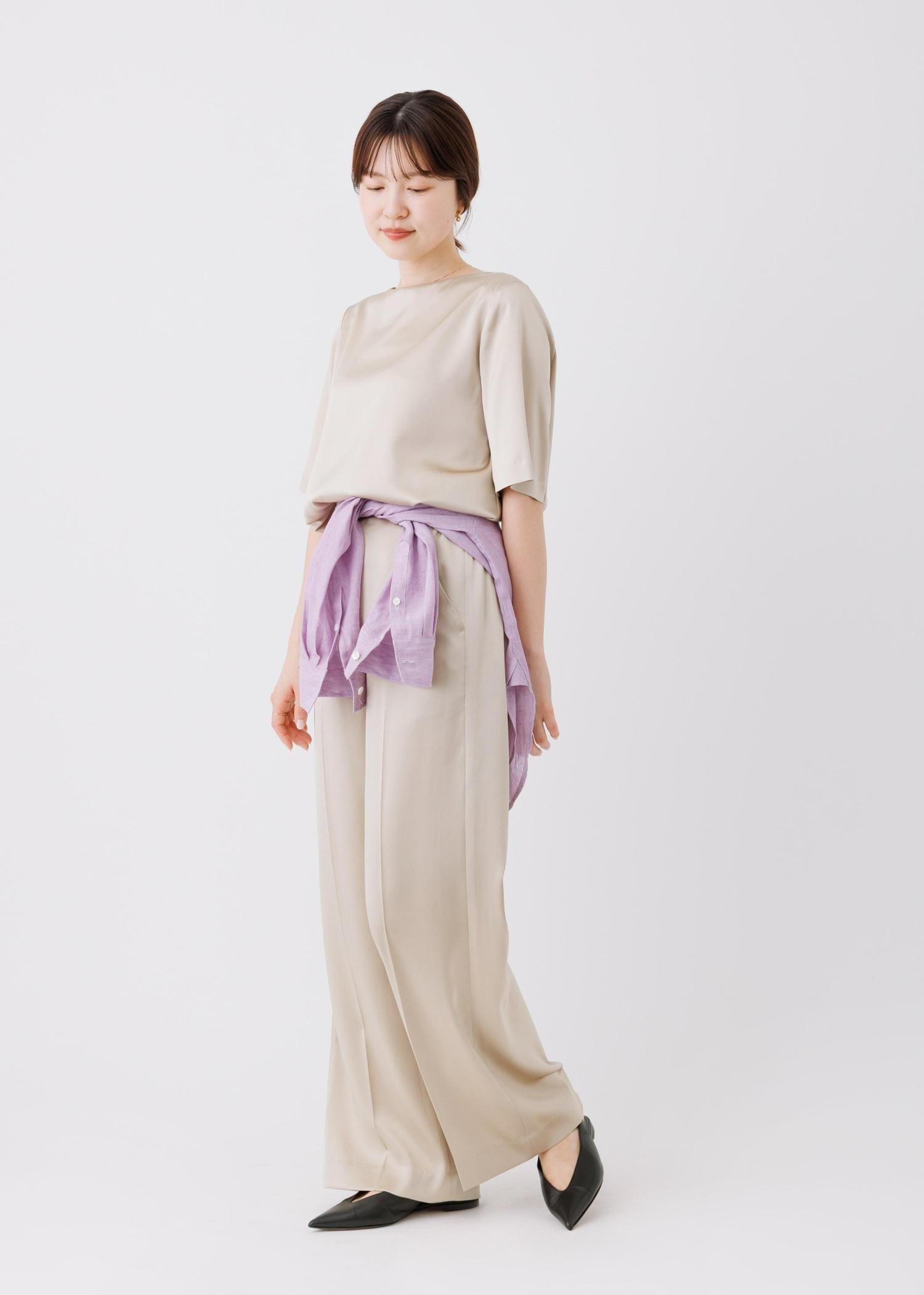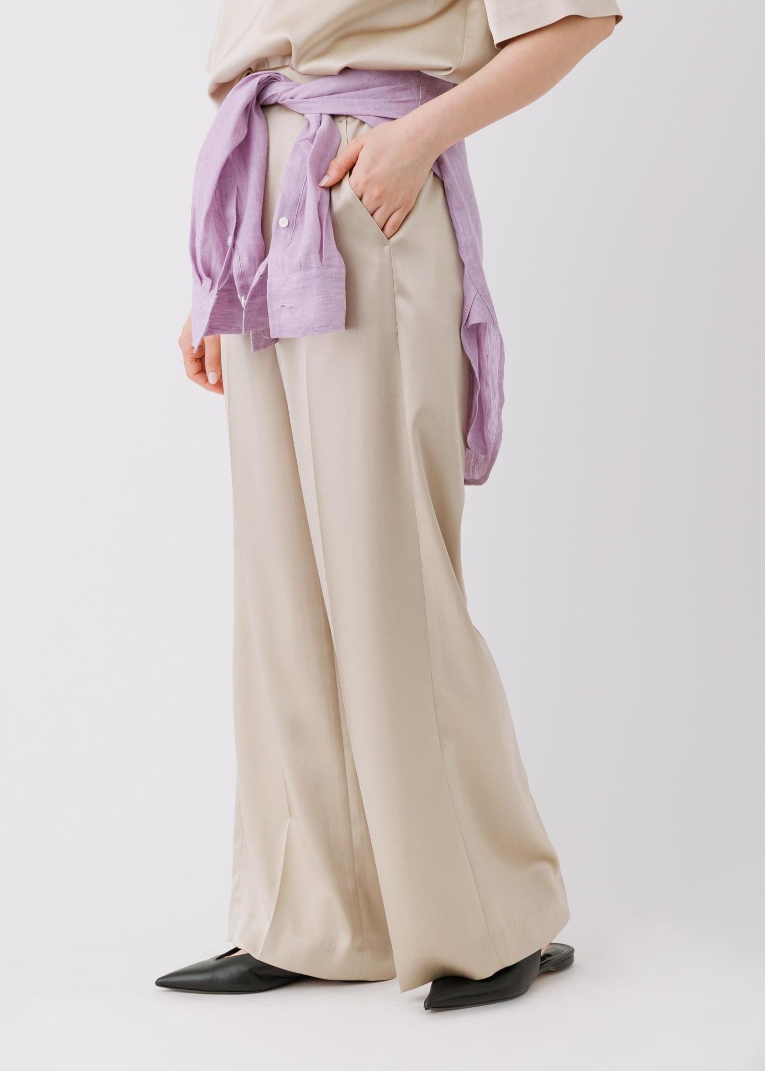 ROPÉドレープサテンイージーパンツ/セットアップ対応・イージーケアベージュ / 38¥25,300レビュー身長160cm、サンプル38サイズ着用。